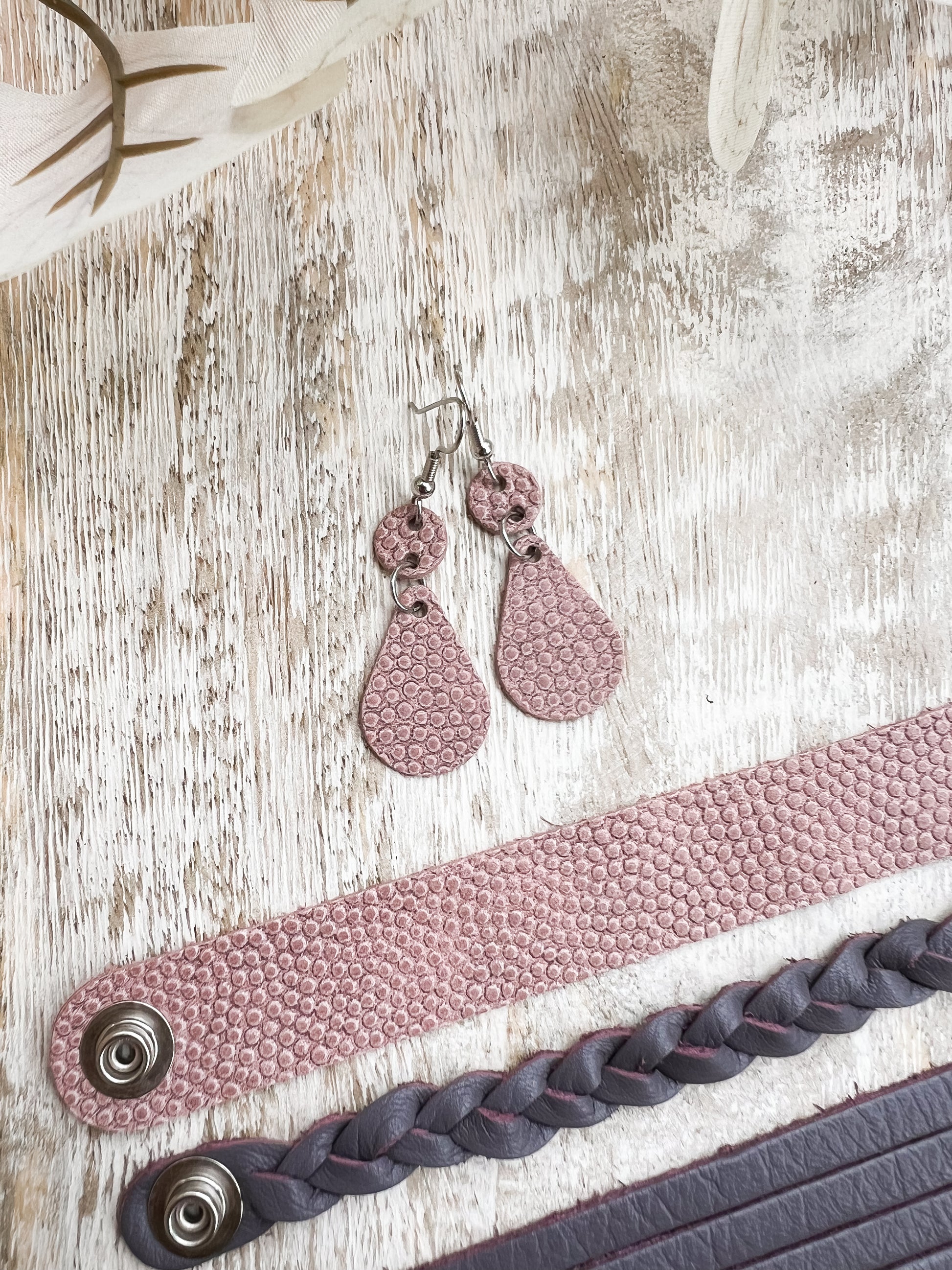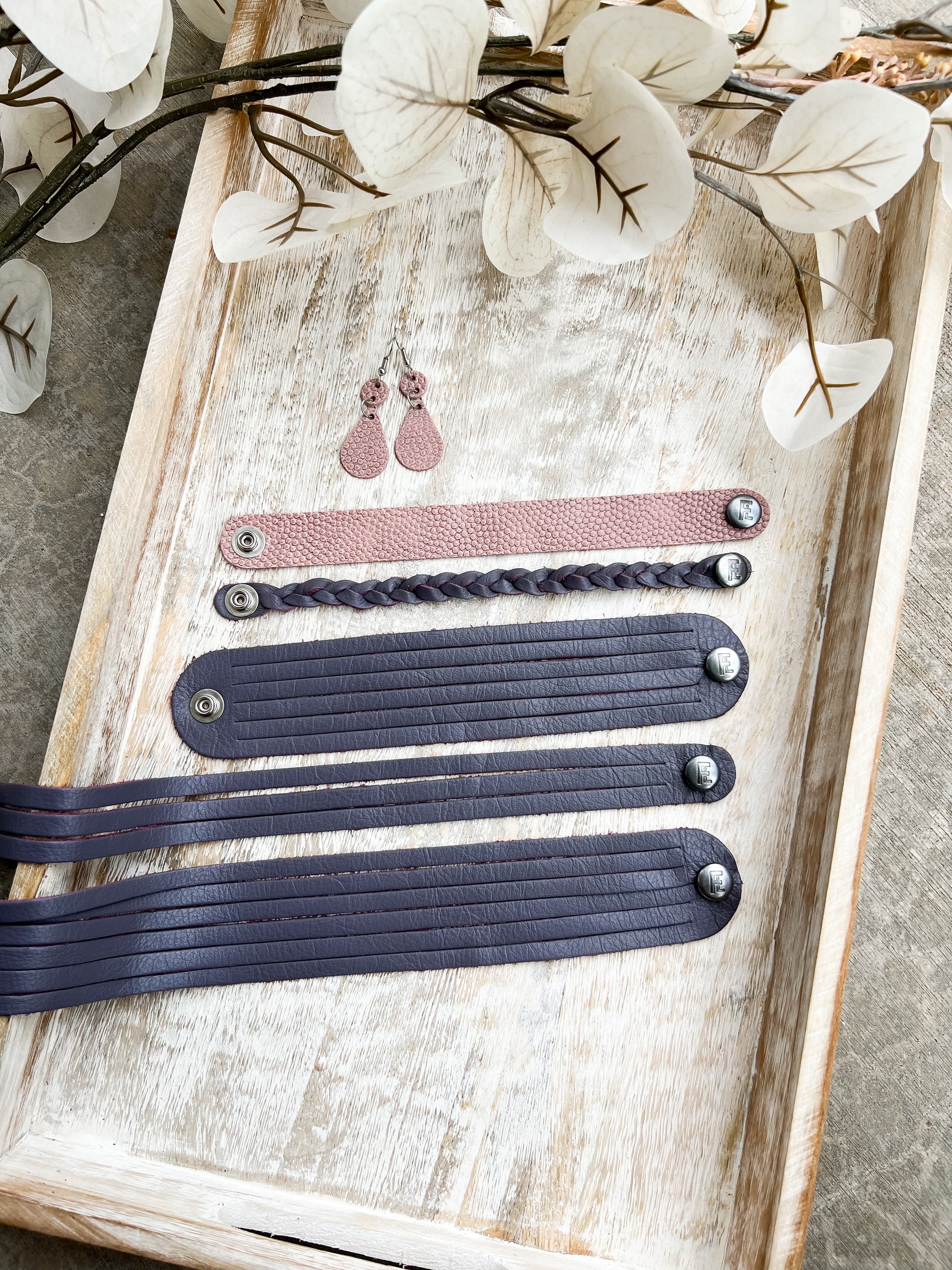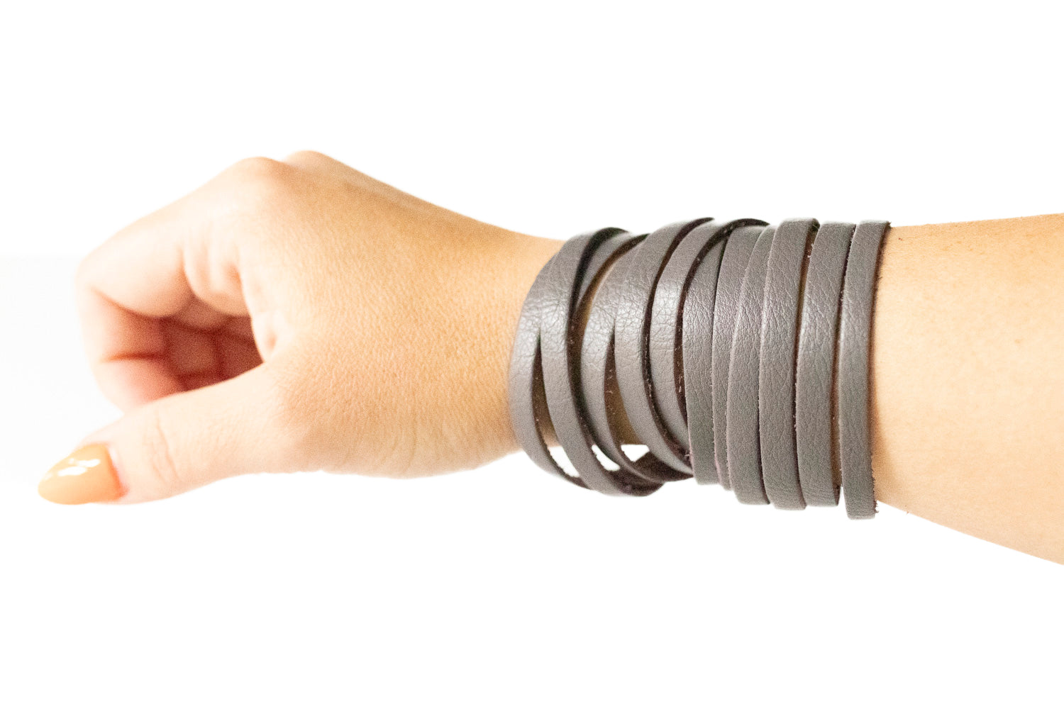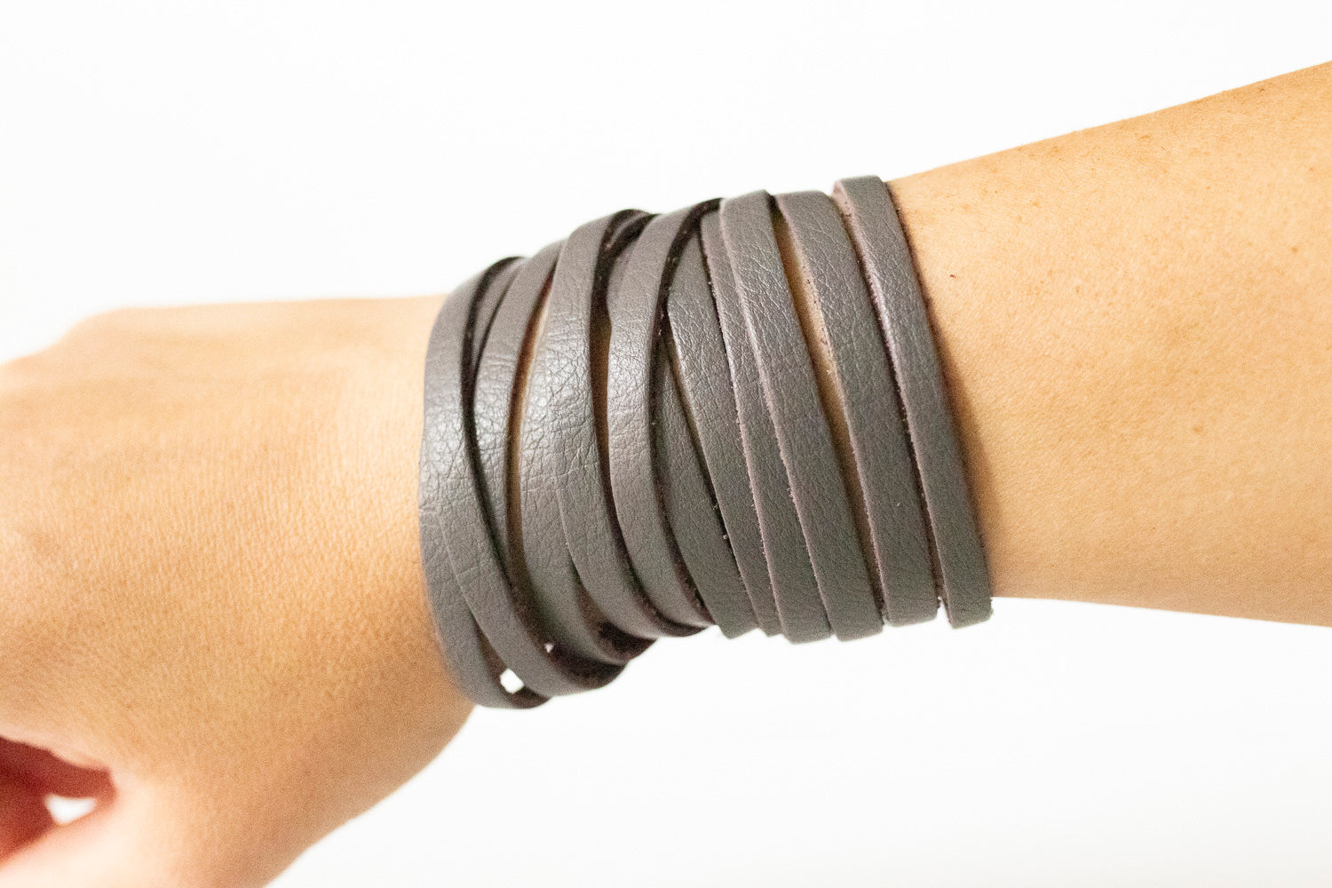 Leather Bracelet / Original Sliced Wrap Cuff / Mauve