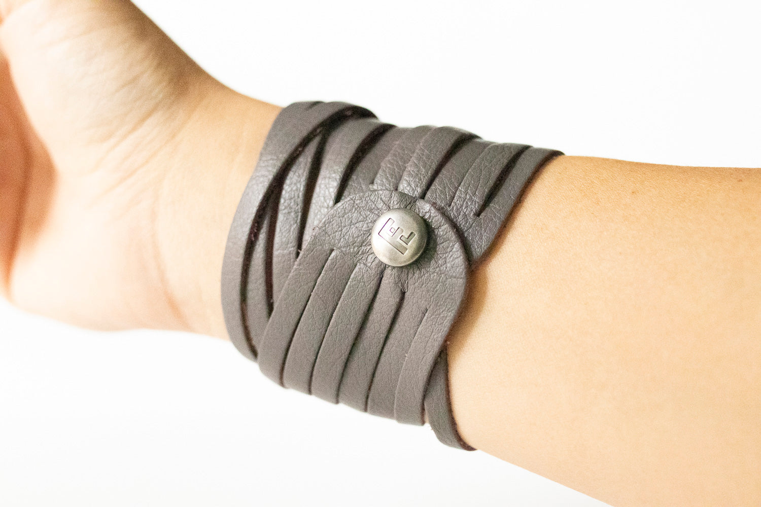 These bracelets will come with a brushed silver FL (Flourish Leather) logo snap.