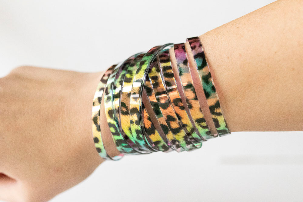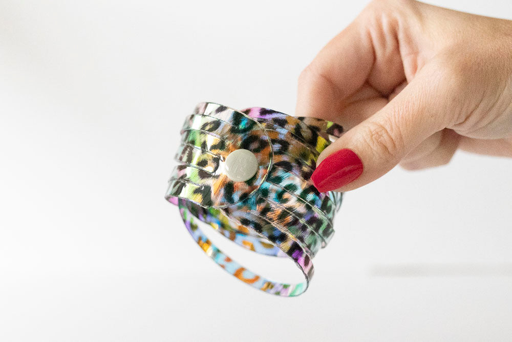 This bracelet is 100% genuine jelly vinyl. Handmade and hand-cut.