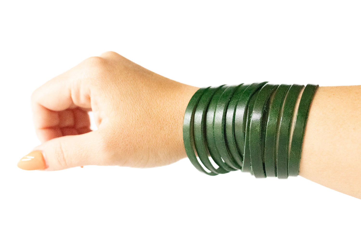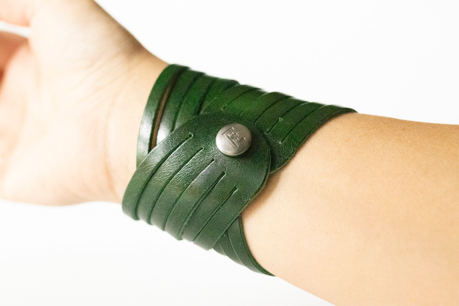 Leather Bracelet / Original Sliced Wrap Cuff / Pine Tree