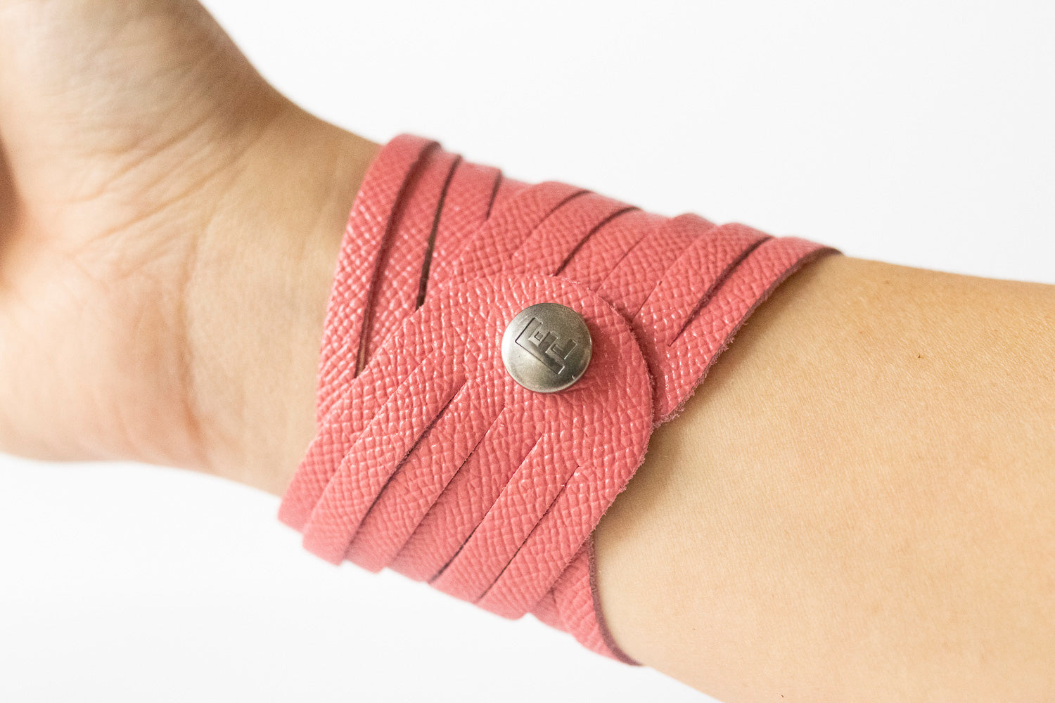 Leather Bracelet / Original Sliced Wrap Cuff / Pink Cherries