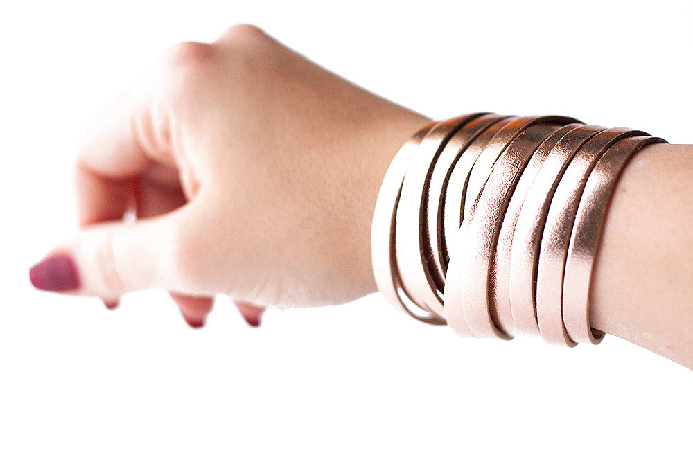 Leather Bracelet / Original Sliced Wrap Cuff / Metallic Rosegold