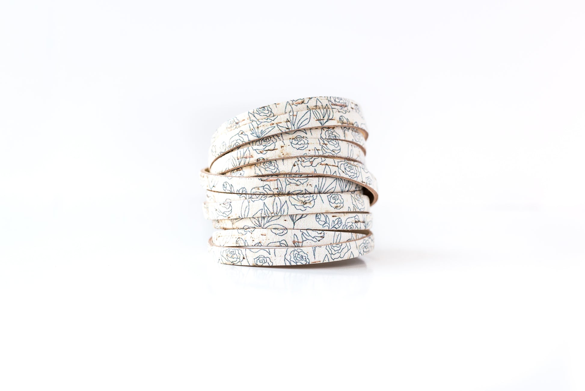 Leather Bracelet / Original Sliced Wrap Cuff / Simple Roses Cork