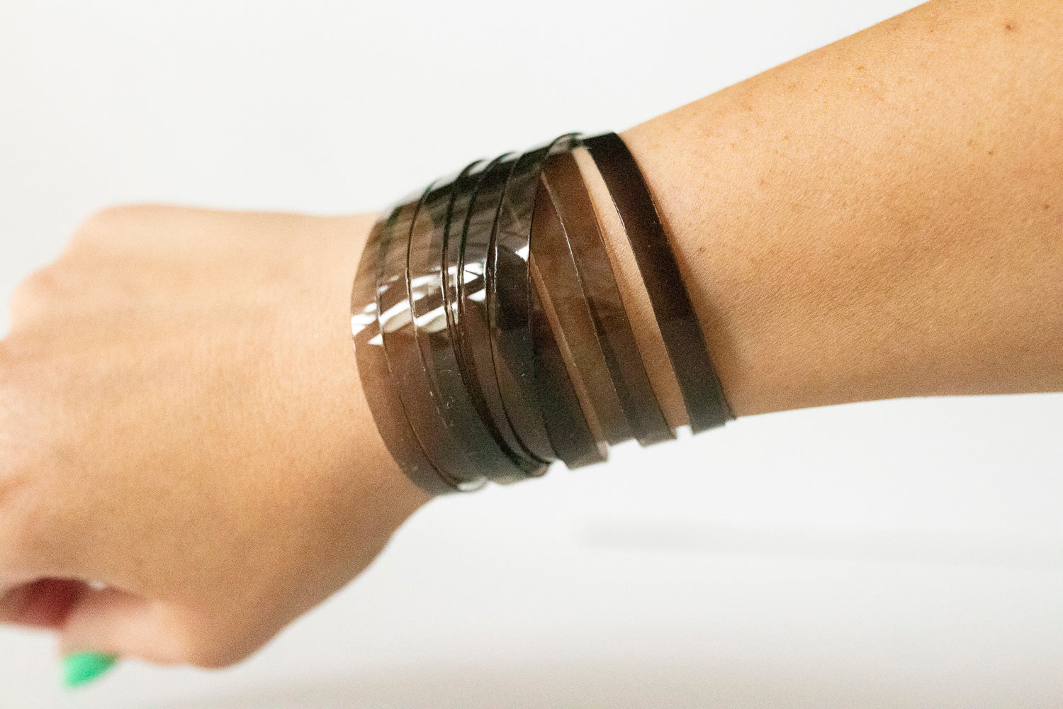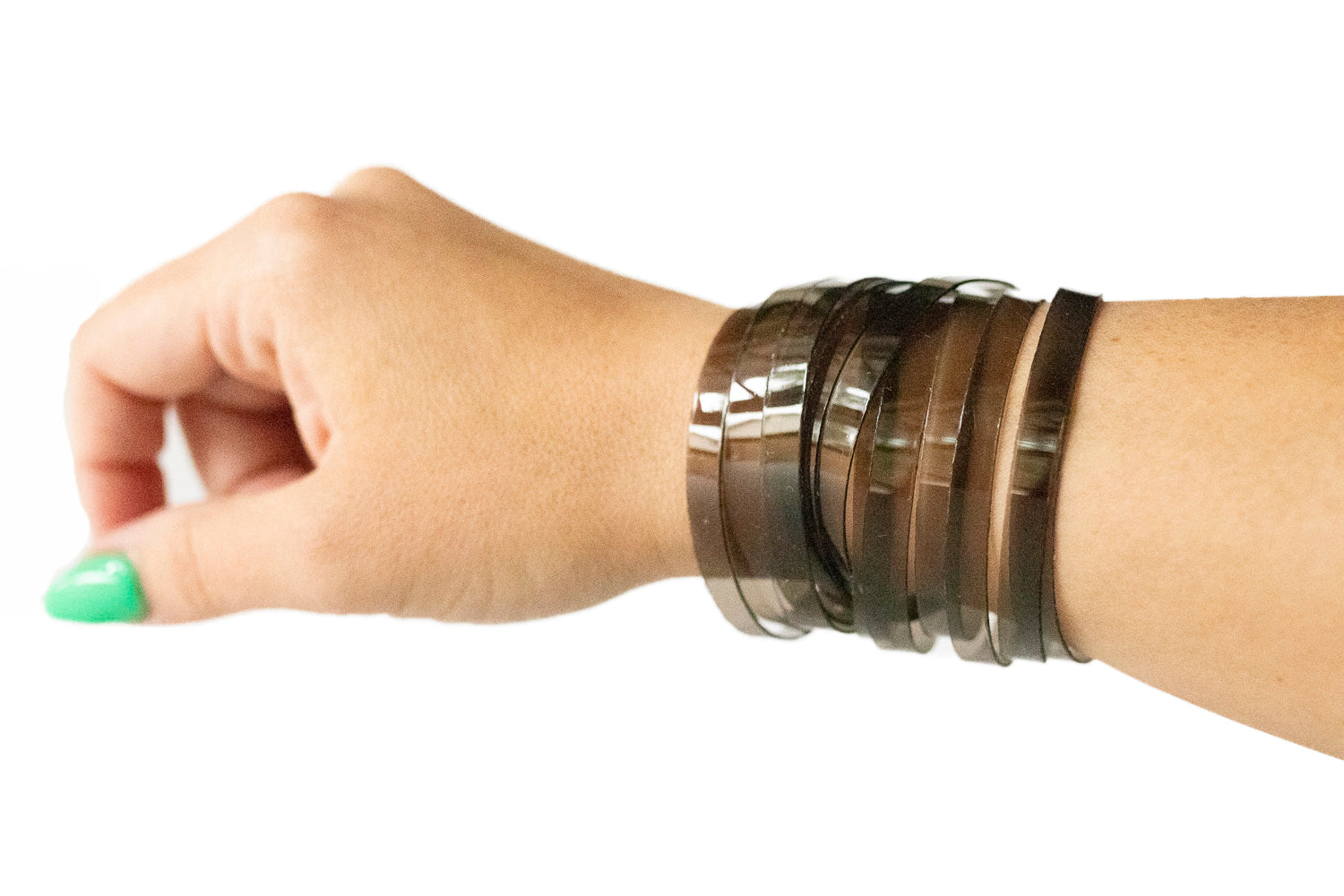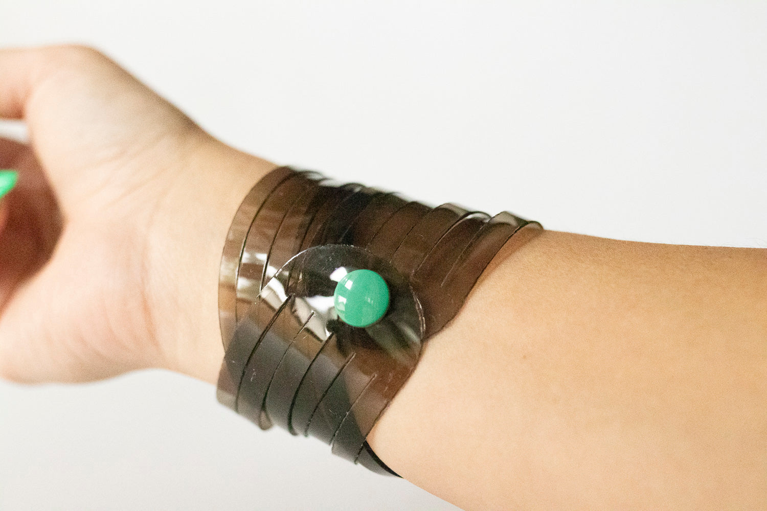 This bracelet is 100% genuine jelly vinyl. Handmade and hand-cut.