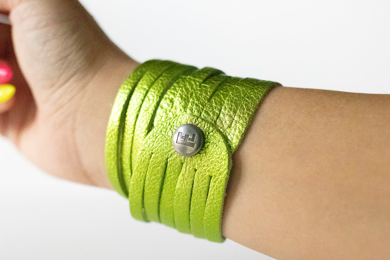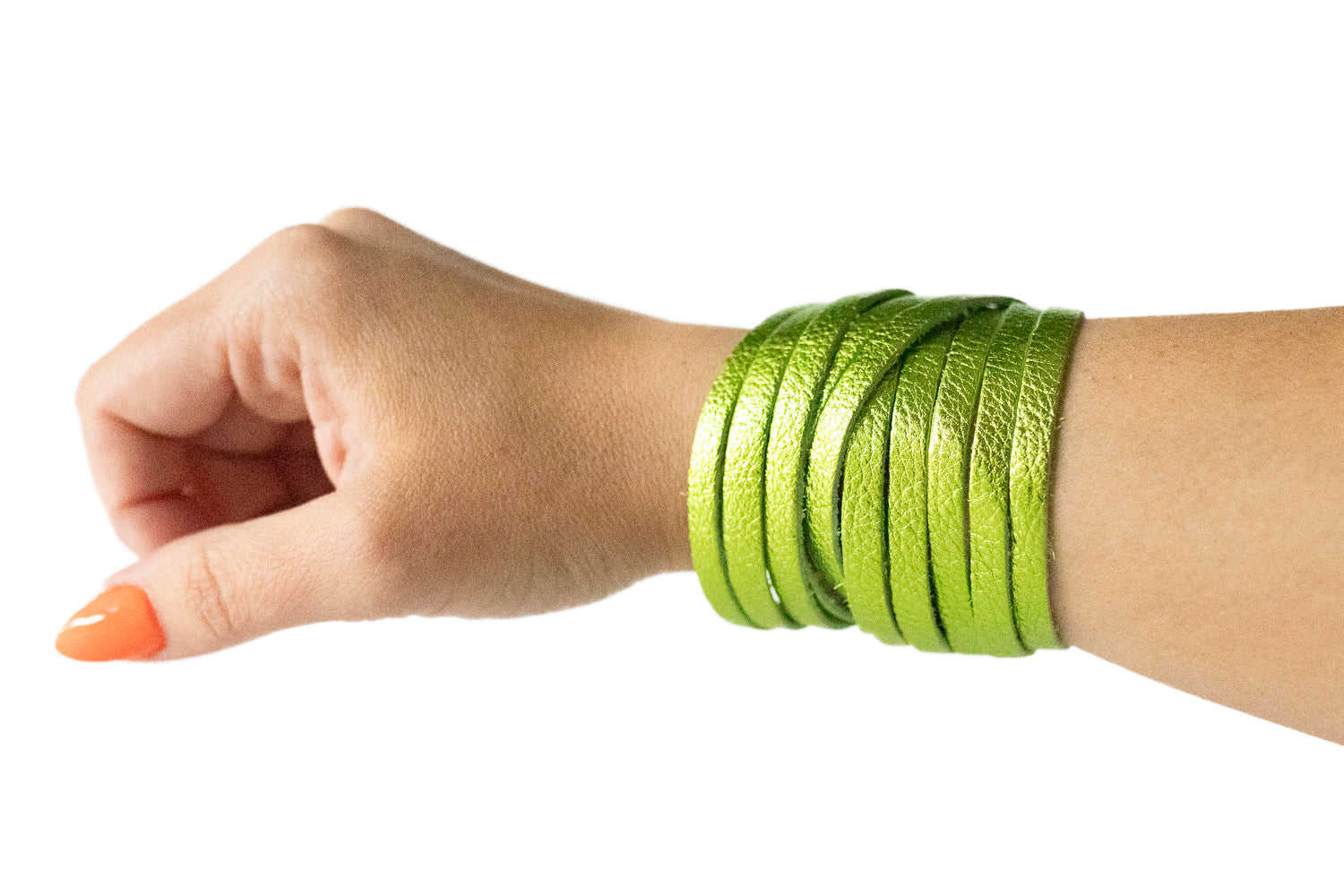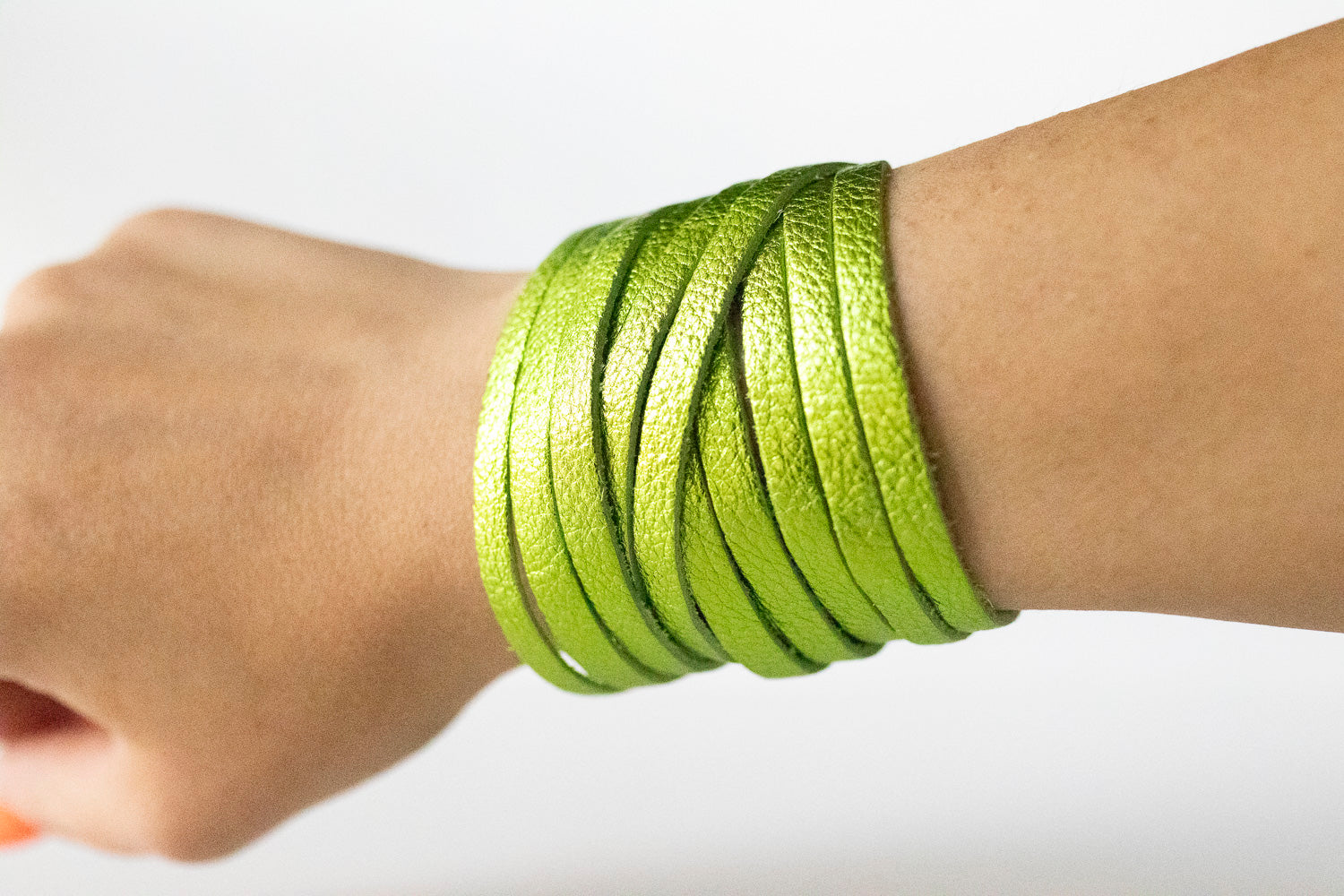 Leather Bracelet / Original Sliced Wrap Cuff / Soft Lime