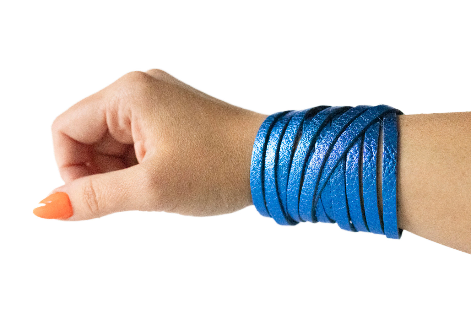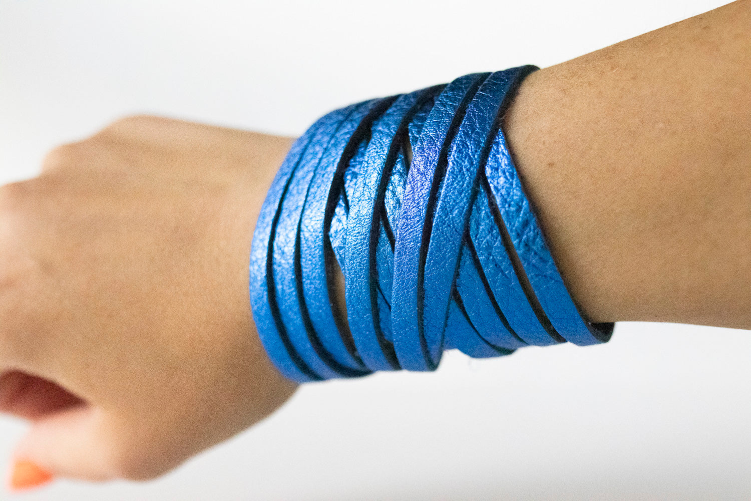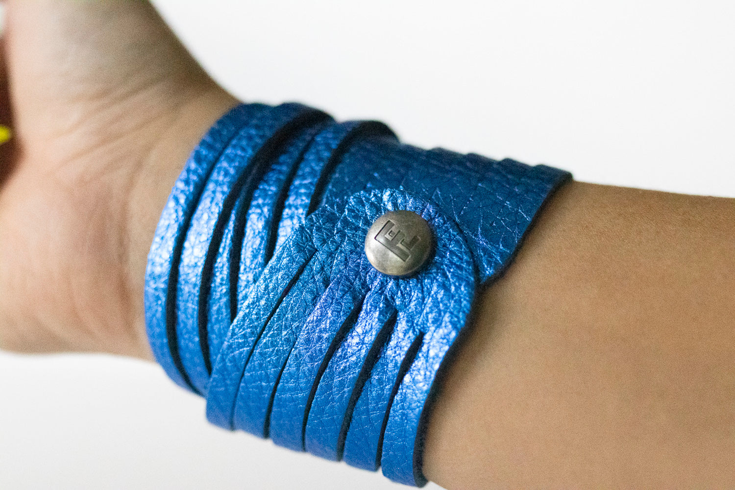 Leather Bracelet / Original Sliced Wrap Cuff / Soft Royal