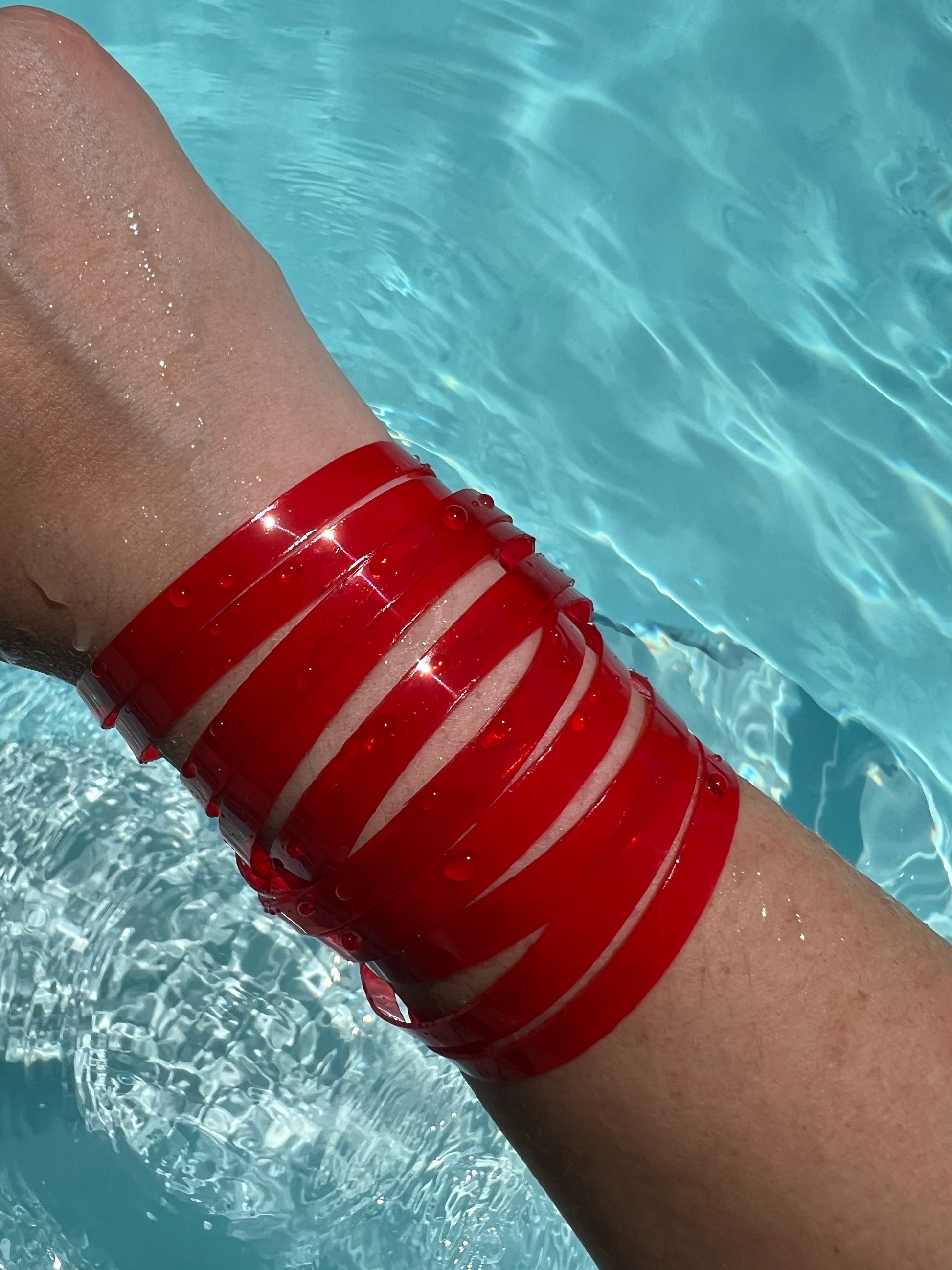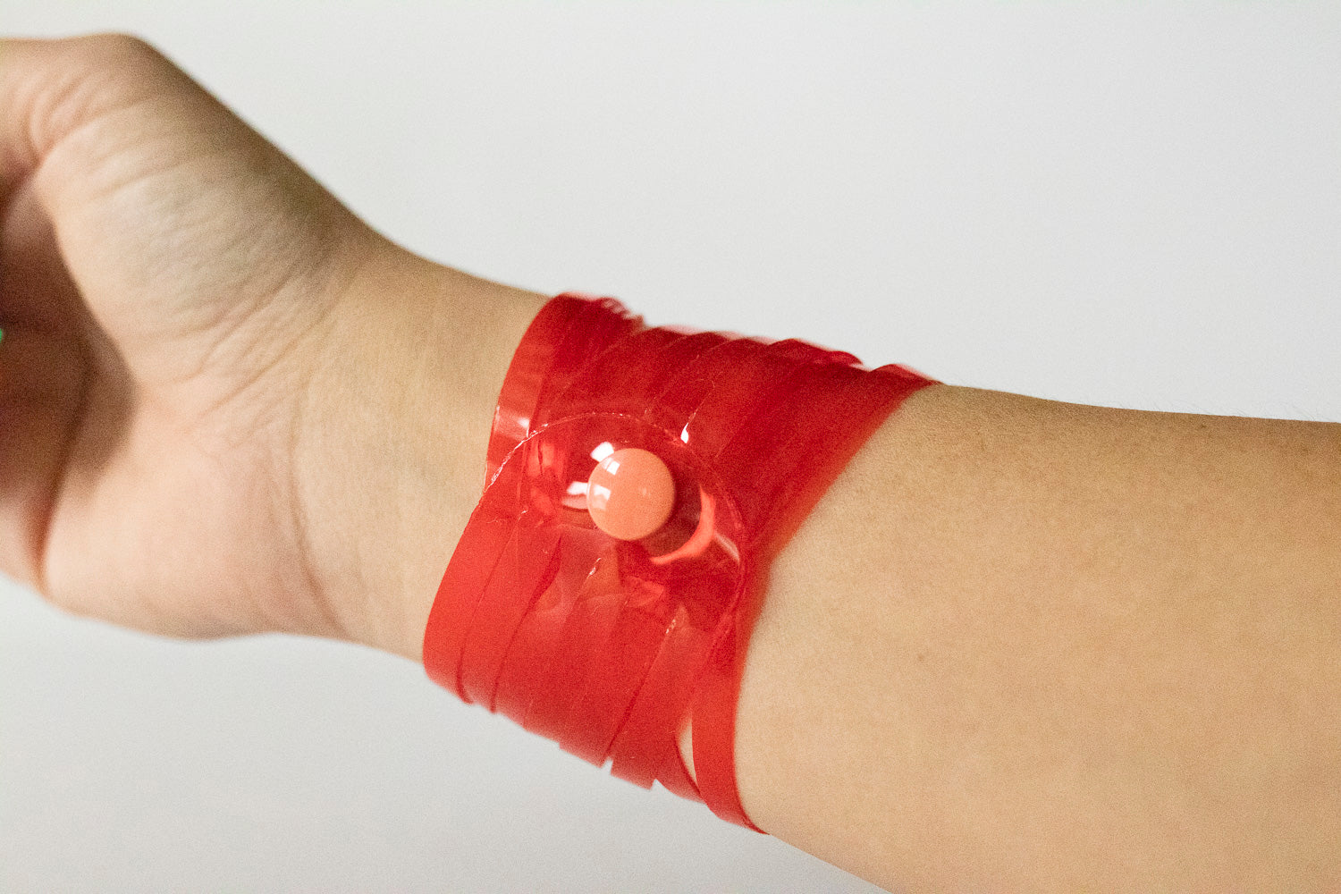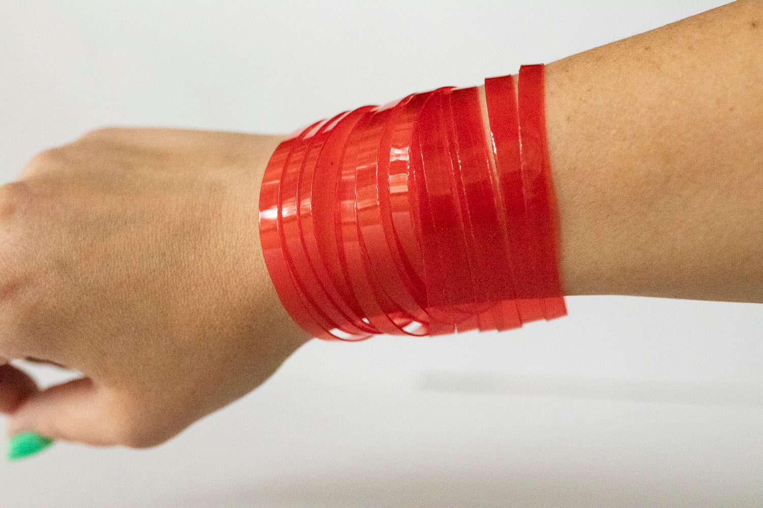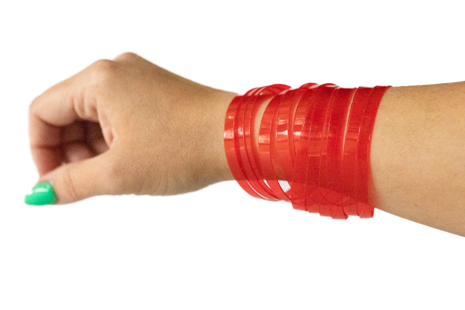 This bracelet is 100% genuine jelly vinyl. Handmade and hand-cut.