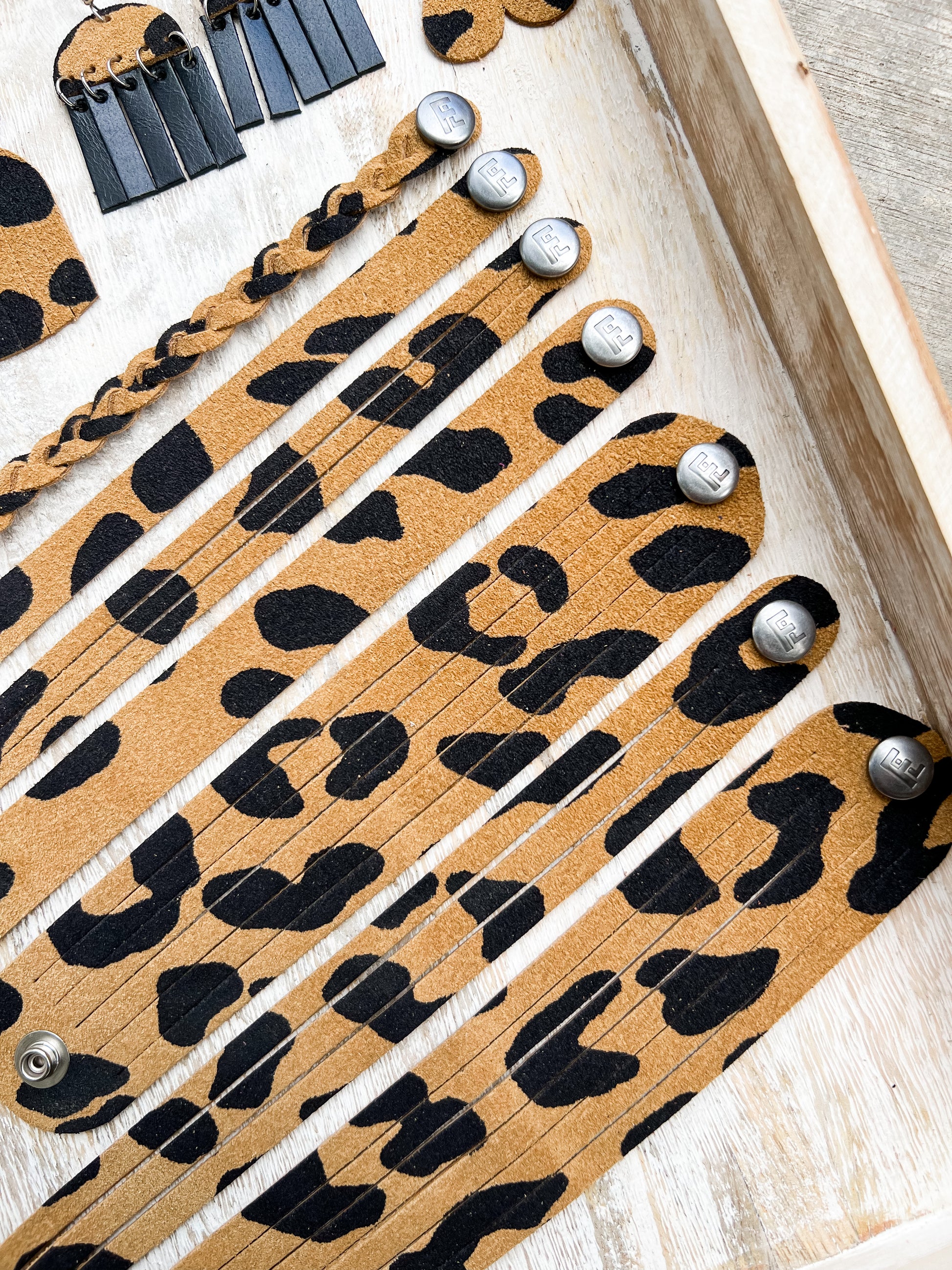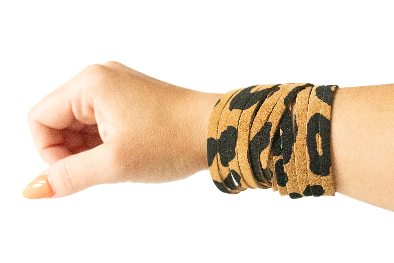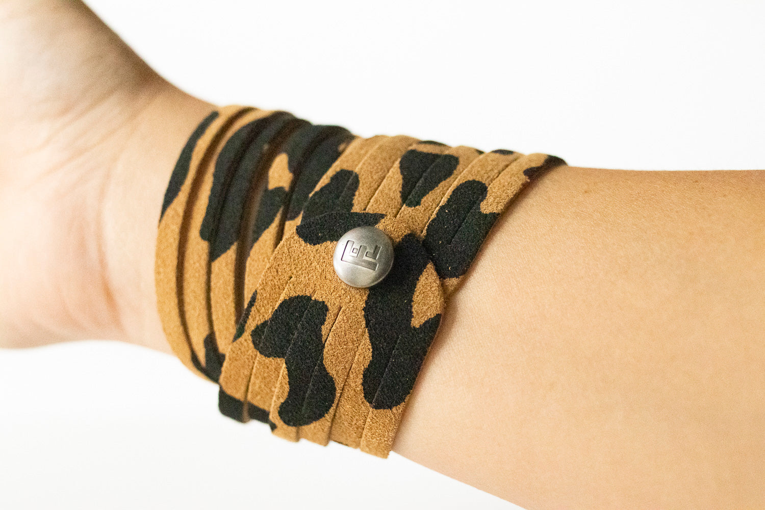 Leather Bracelet / Original Sliced Wrap Cuff / Tan Leopard Suede