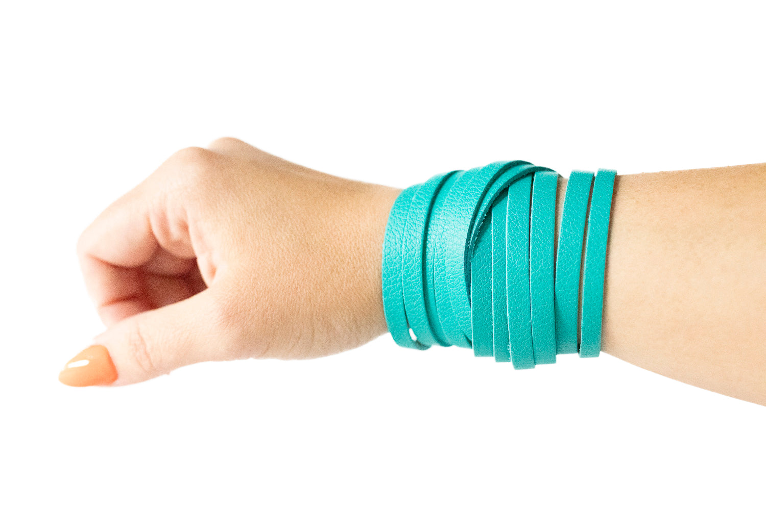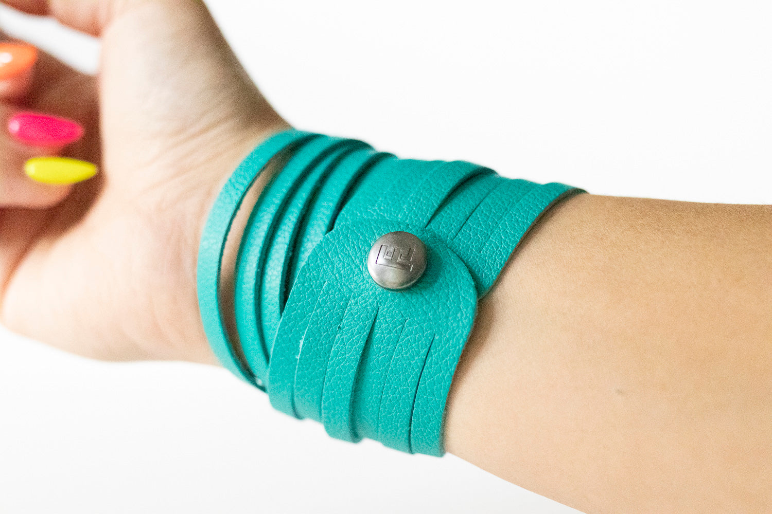 Leather Bracelet / Original Sliced Wrap Cuff / Tropical Waters