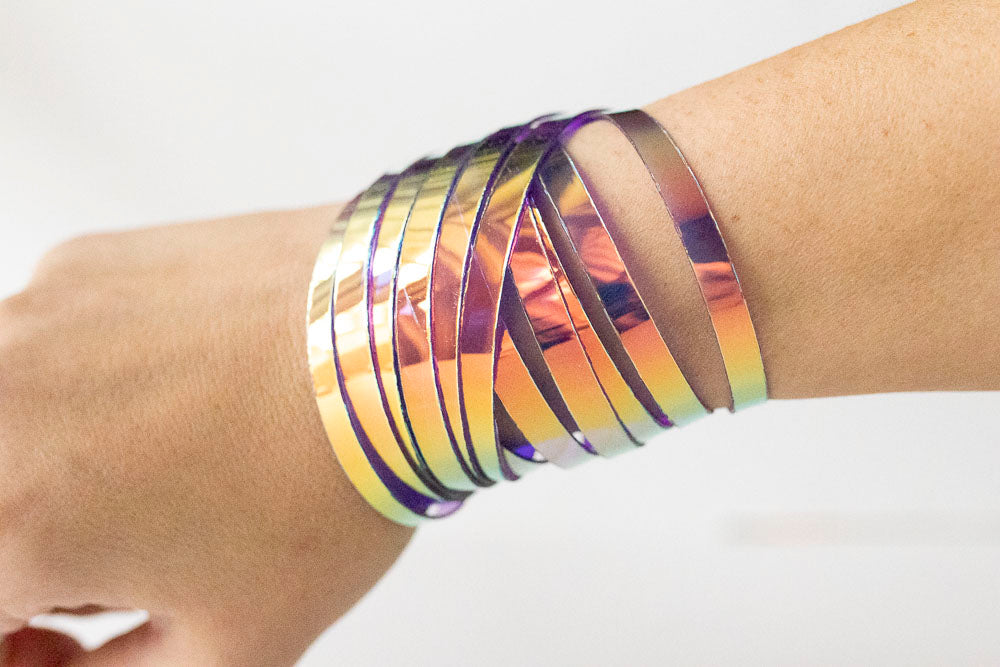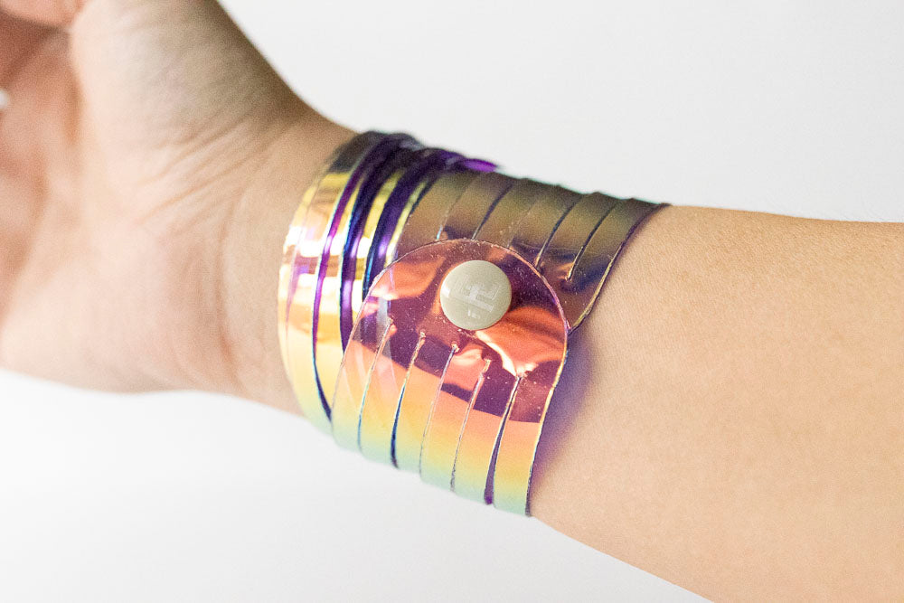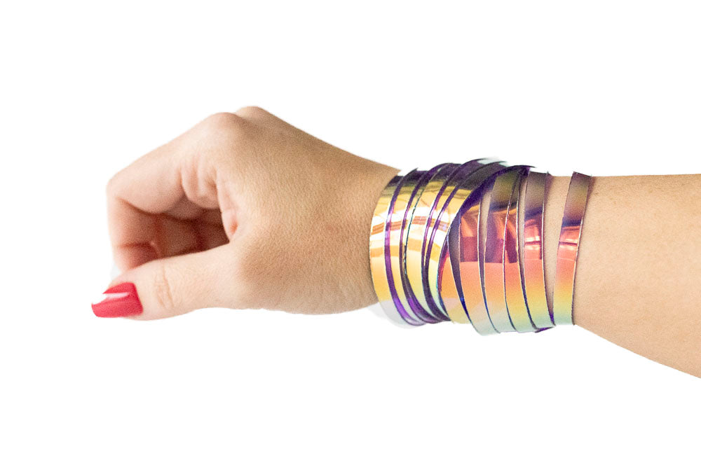 This bracelet is 100% genuine jelly vinyl. Handmade and hand-cut.