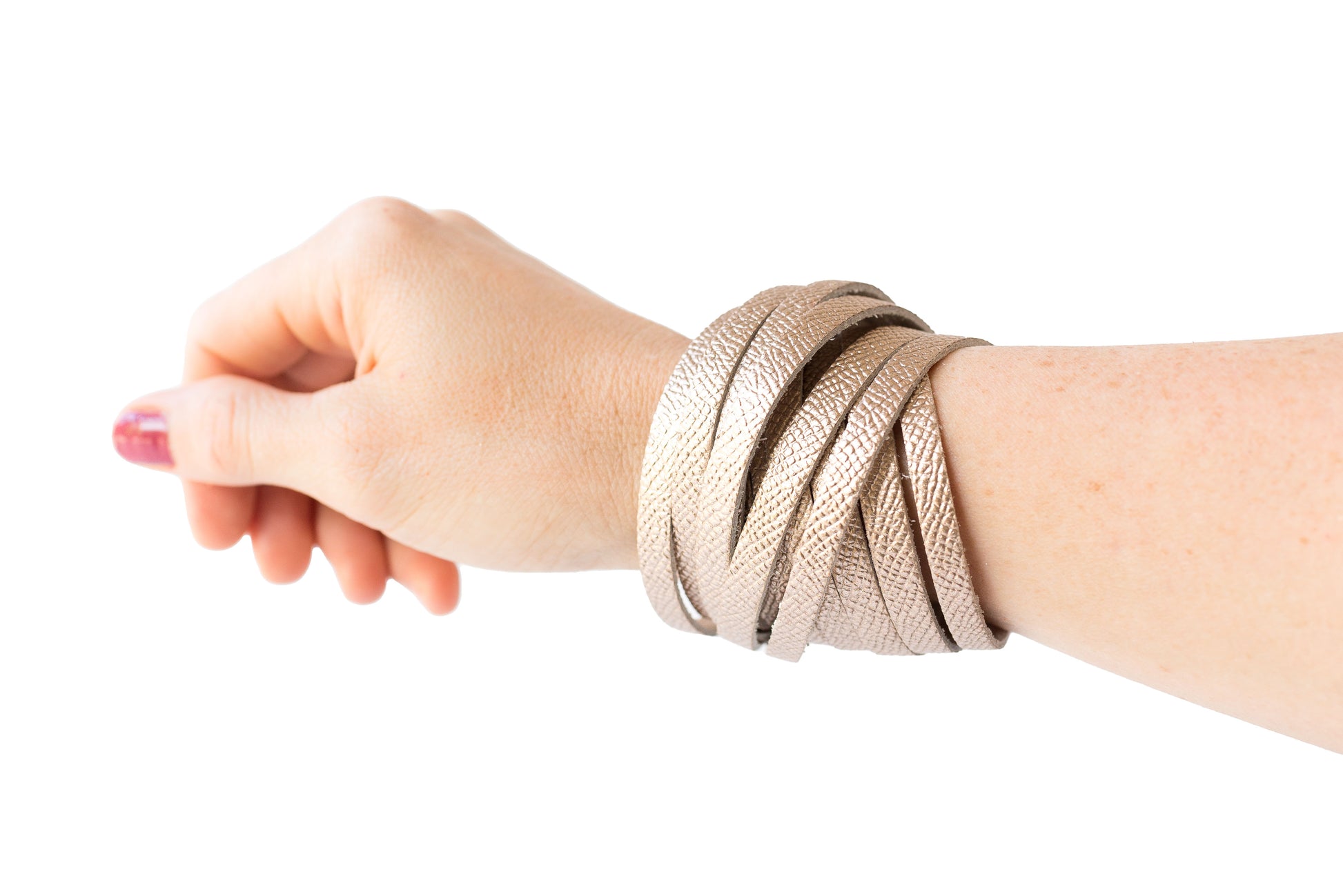 Leather Bracelet / Original Sliced Wrap Cuff / White Gold