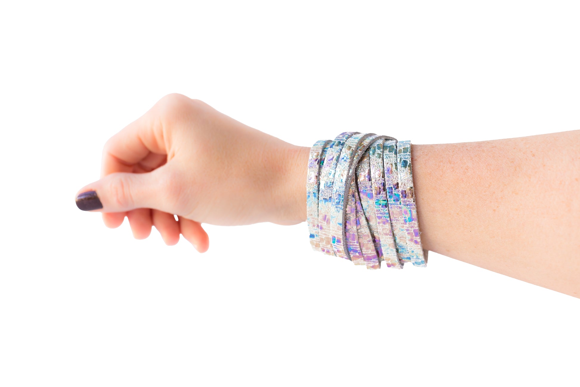 Leather Bracelet / Original Sliced Wrap Cuff / Woven Oil Spill