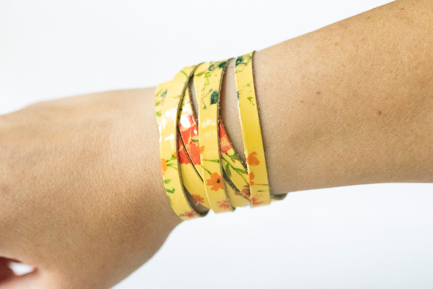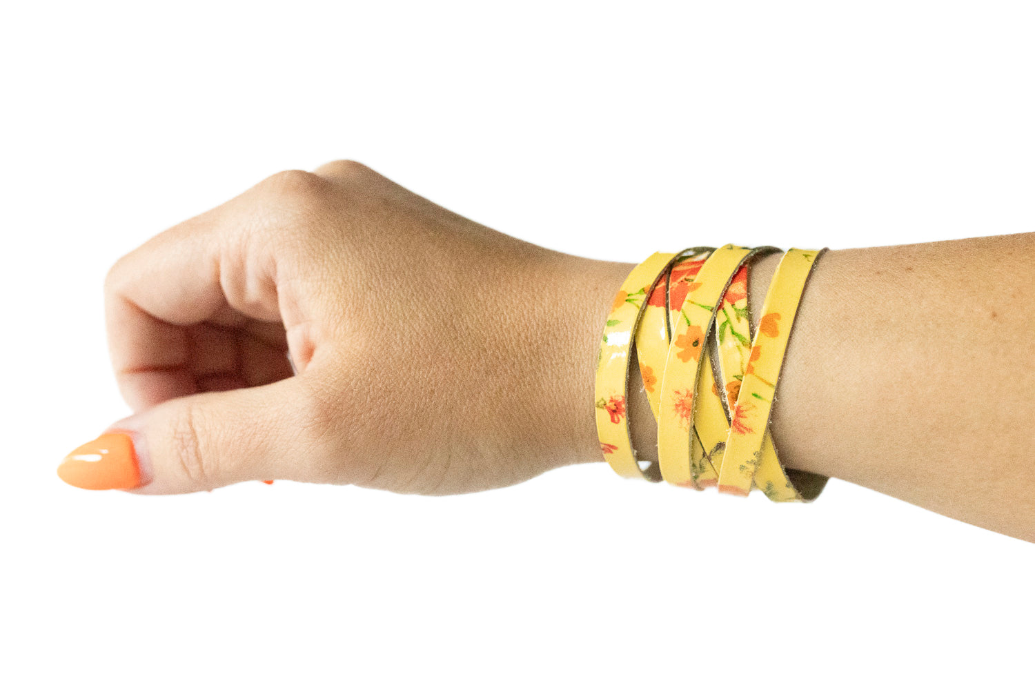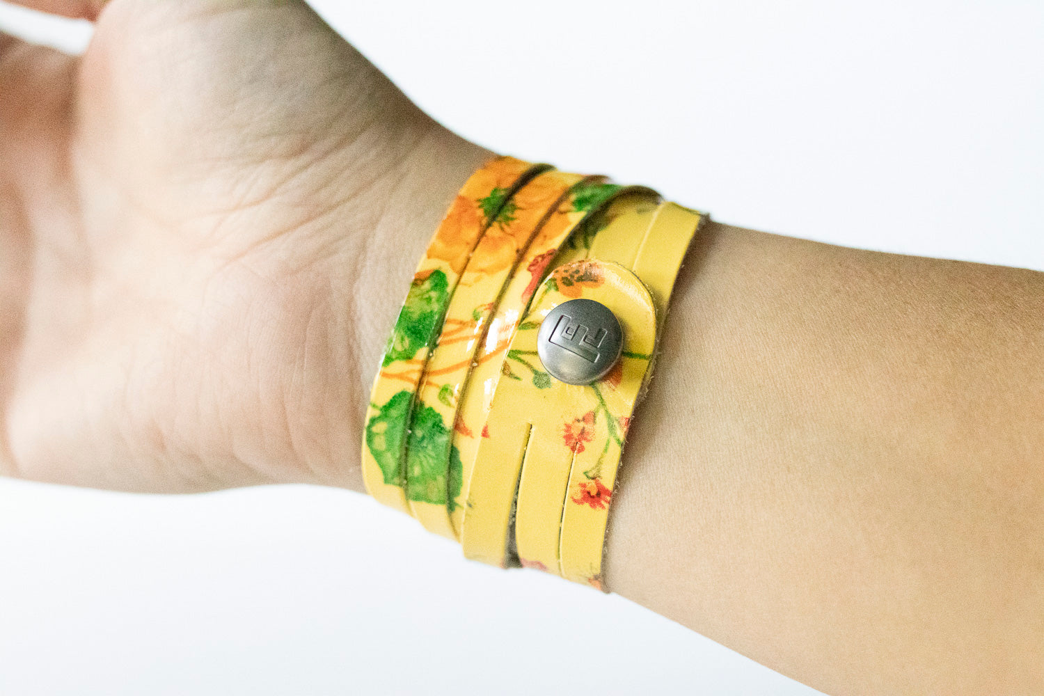 Leather Bracelet / Skinny Sliced Wrap Cuff / Autumn Botanical
