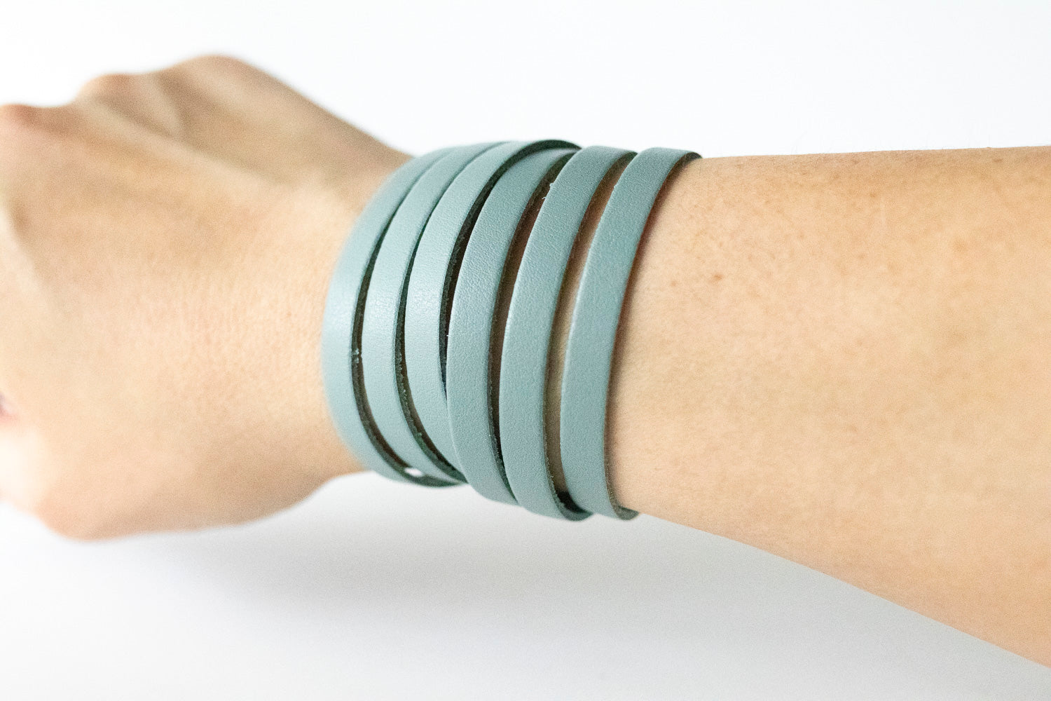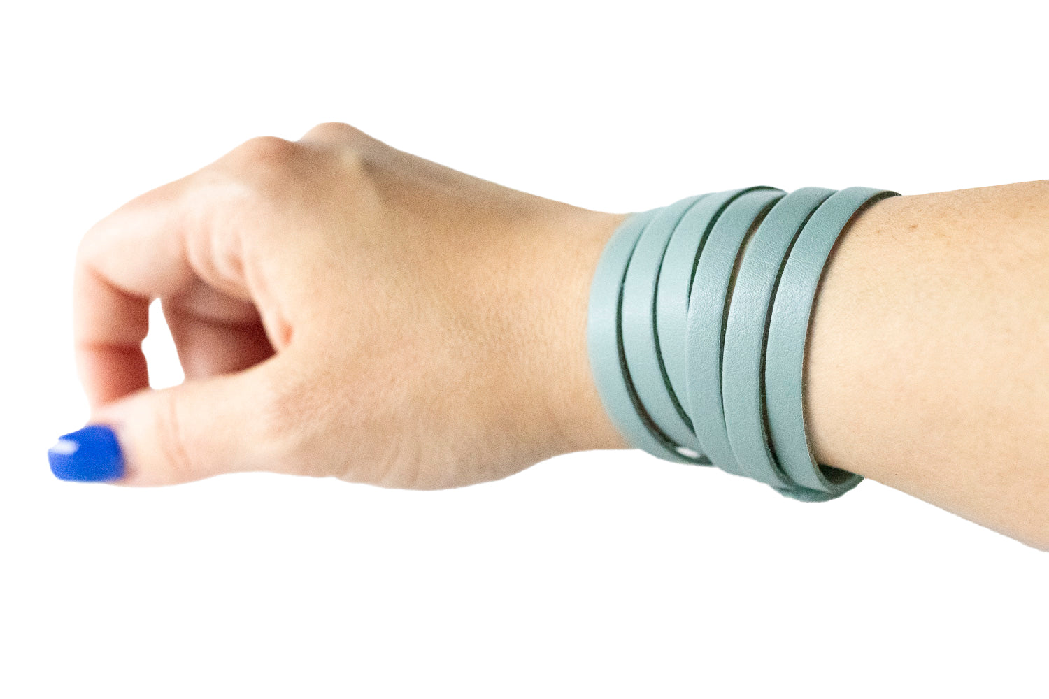 Leather Bracelet / Skinny Sliced Wrap Cuff / Big Sky Blue