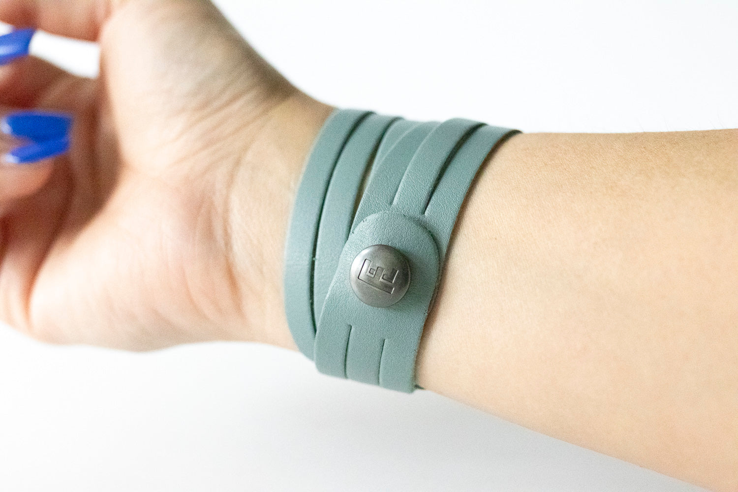 These bracelets will come with a brushed silver FL (Flourish Leather) logo snap.