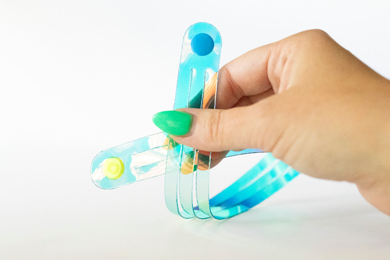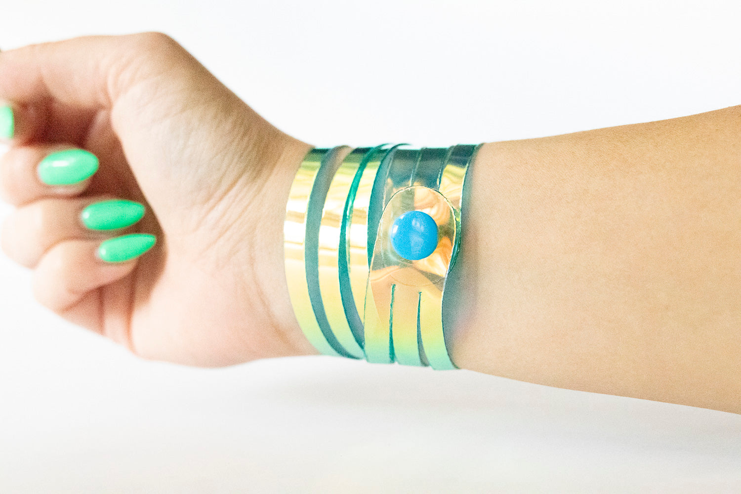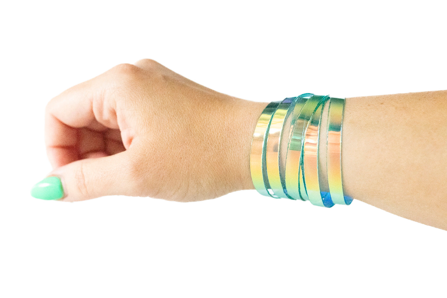 This bracelet is 100% genuine jelly vinyl. Handmade and hand-cut.