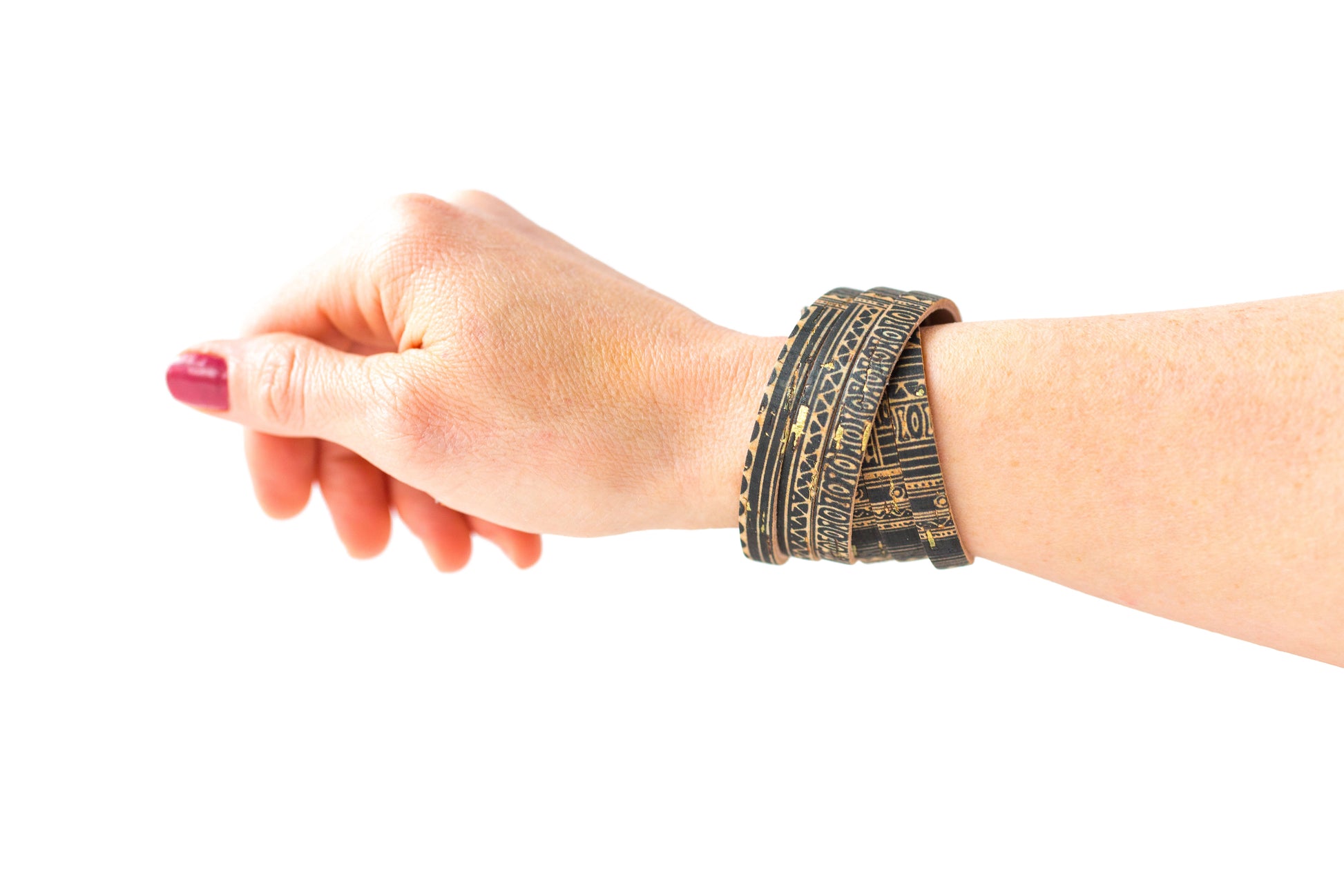 Leather Bracelet / Skinny Sliced Wrap Cuff / Egyptian Cork