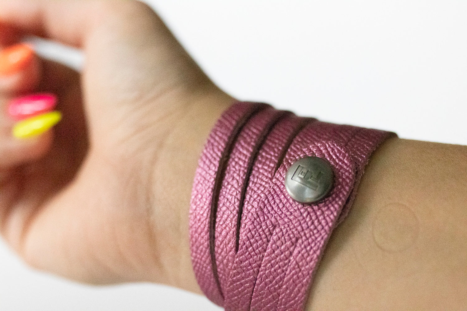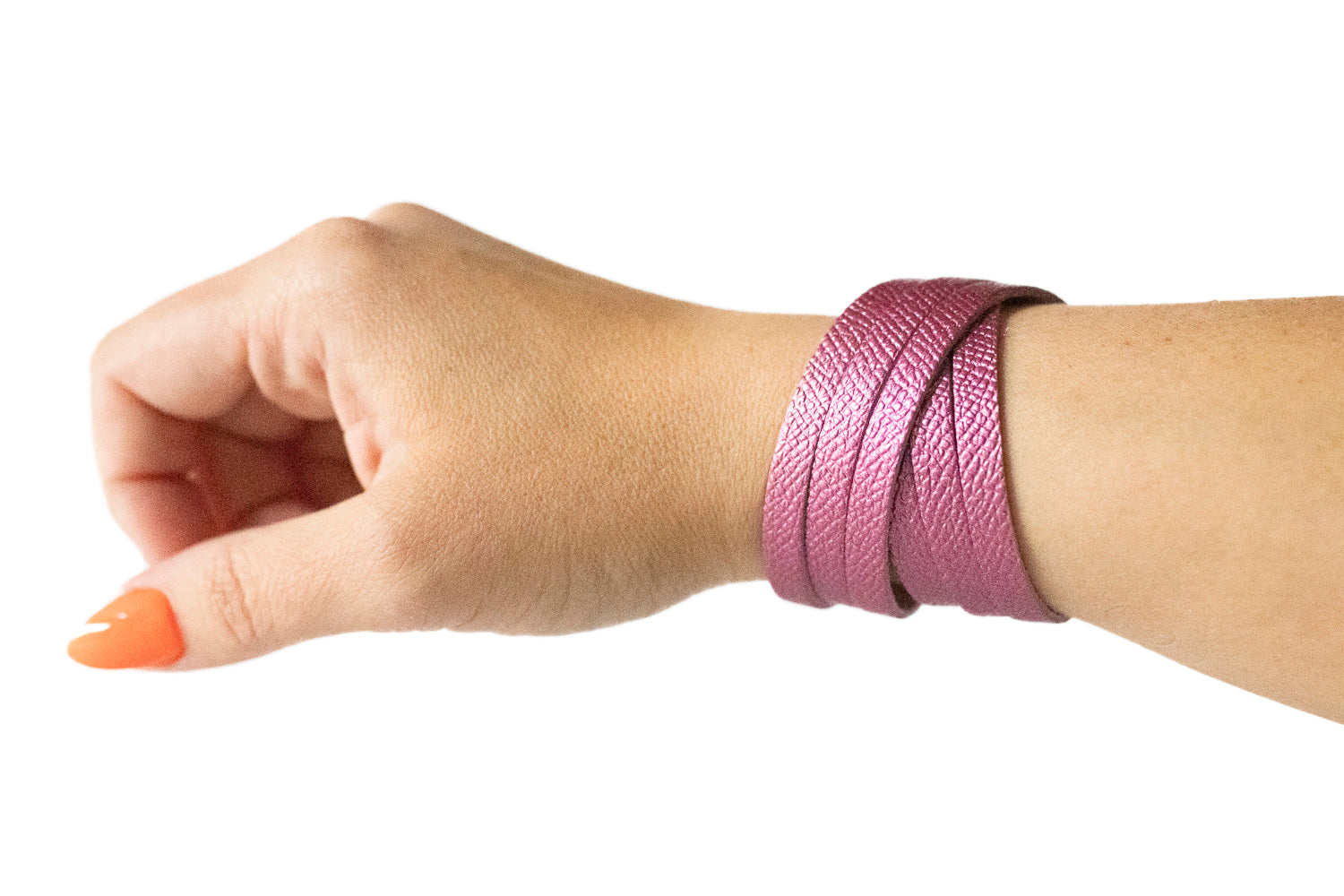 Leather Bracelet / Skinny Sliced Wrap Cuff / French Rose Shimmer