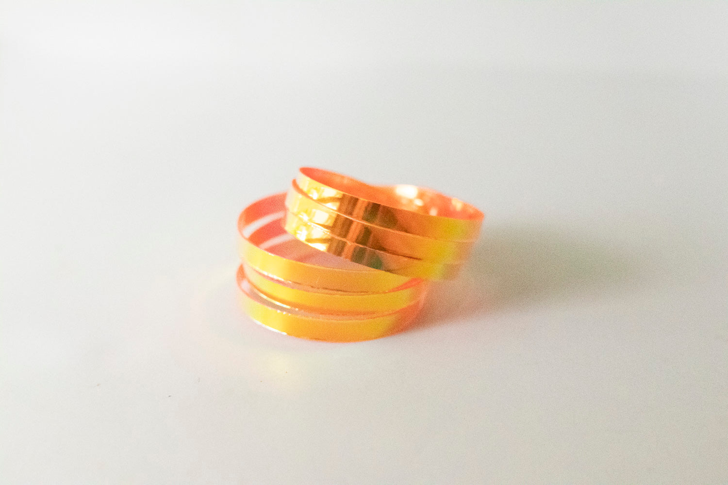 Leather Bracelet / Skinny Sliced Wrap Cuff / Mango Jelly