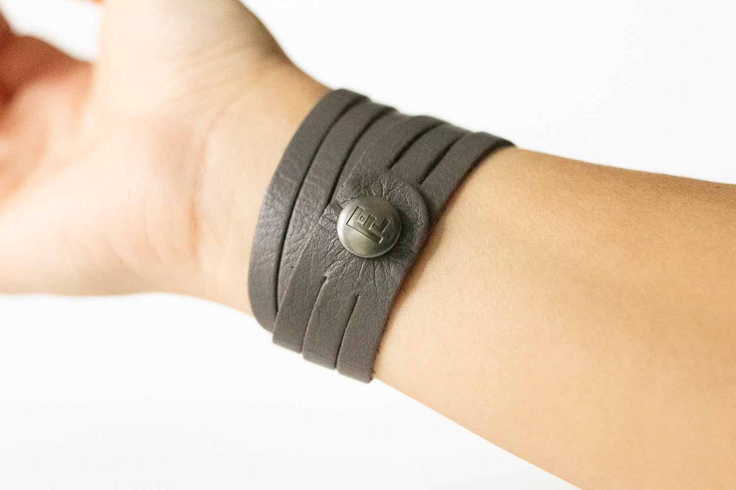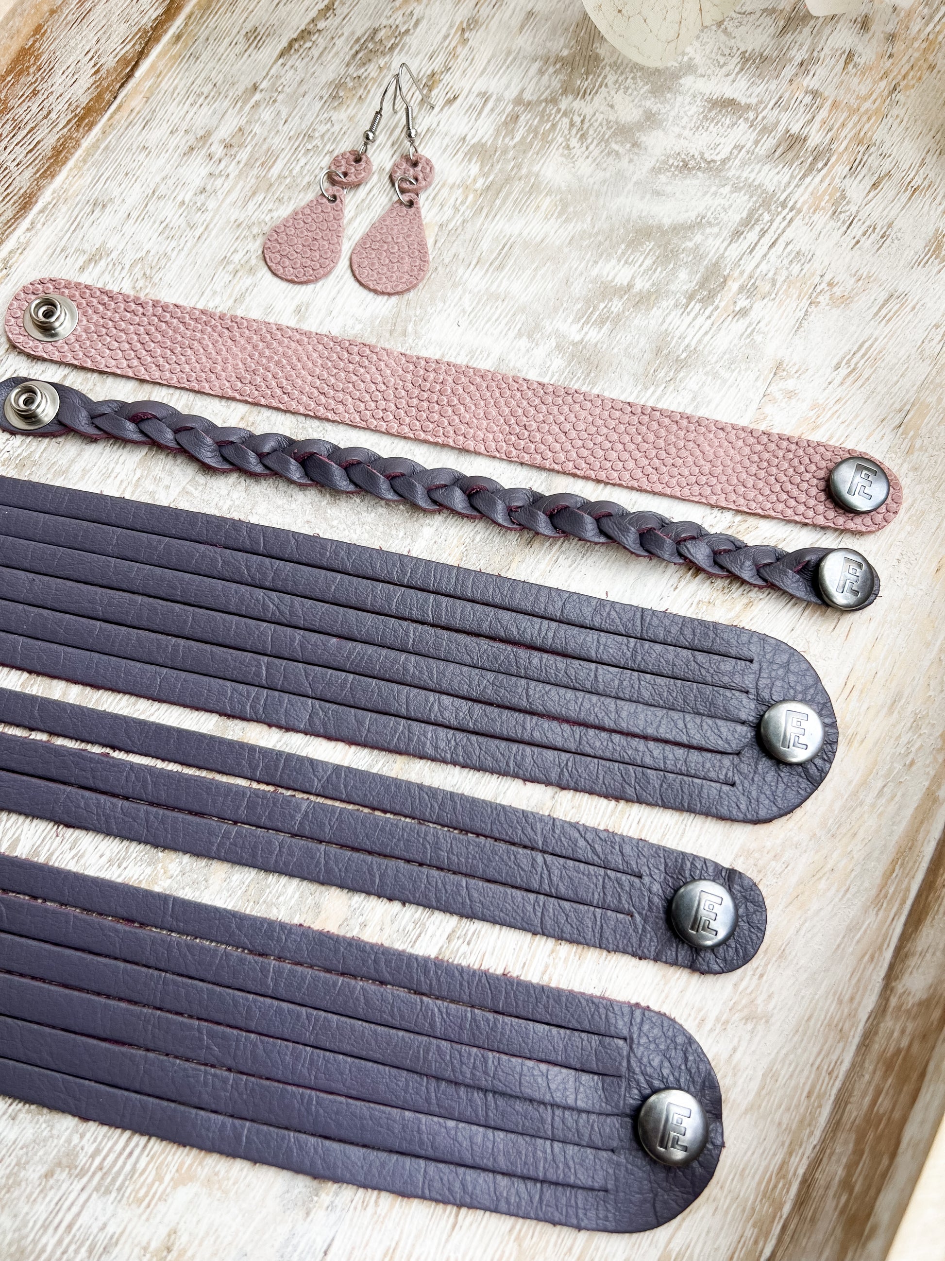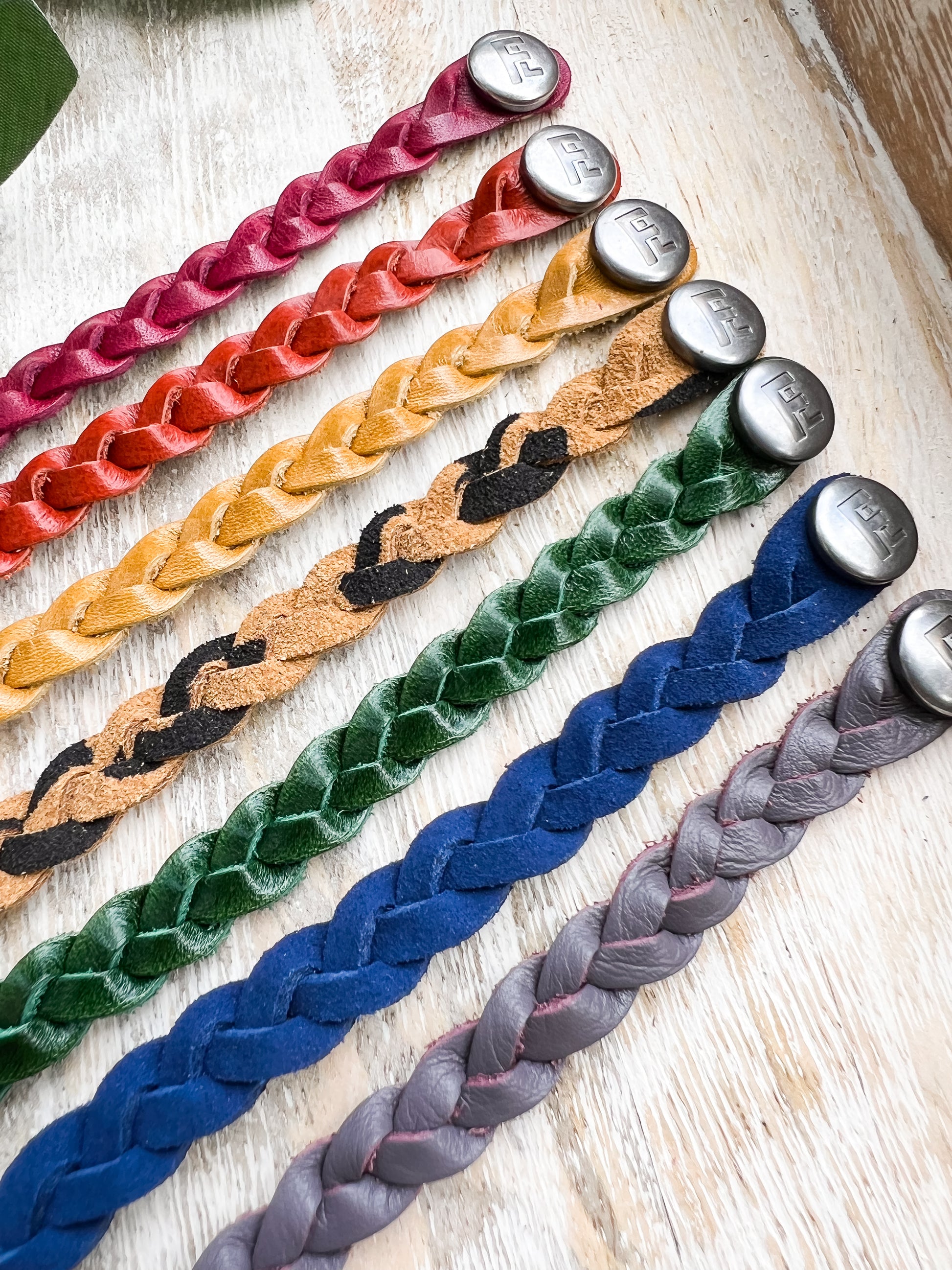 These bracelets will come with a brushed silver FL (Flourish Leather) logo snap.