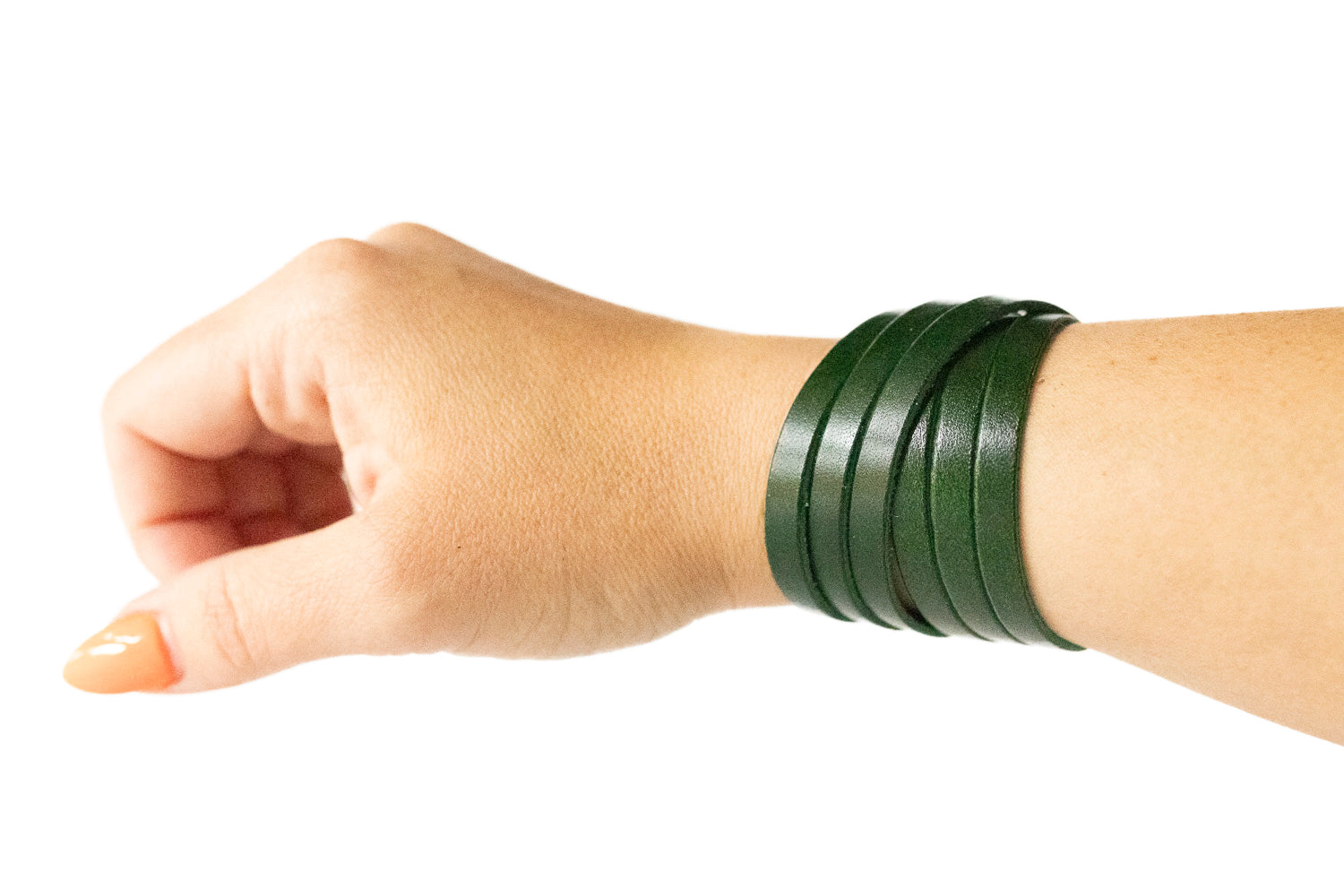 The perfect accessory. Easy and simple for those who like no-nonsense but want a beautifully handcrafted statement piece. Wraps around your wrist 2 times. Has a little slack to be casual and comfortable.