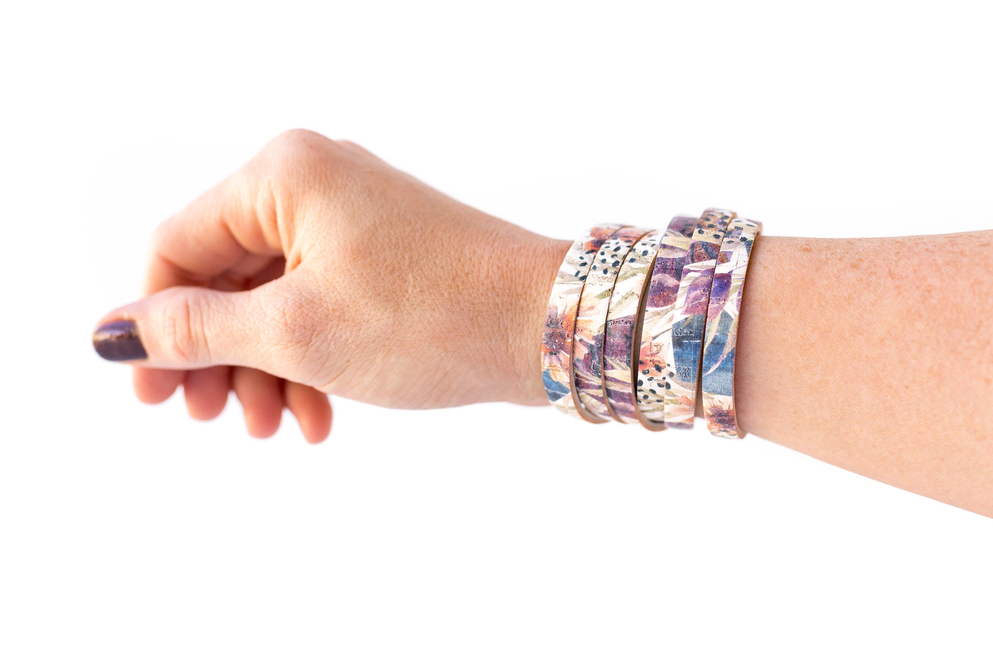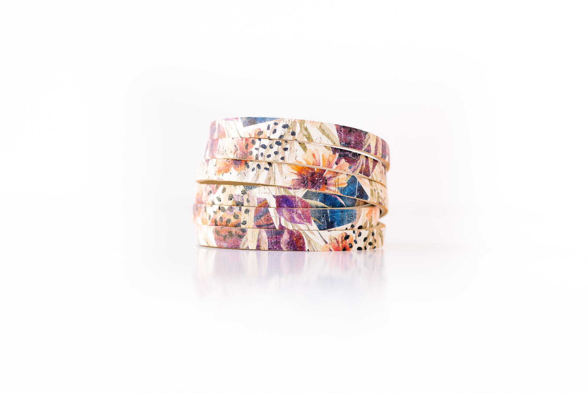 Leather Bracelet / Skinny Sliced Wrap Cuff / Pressed Flowers Cork