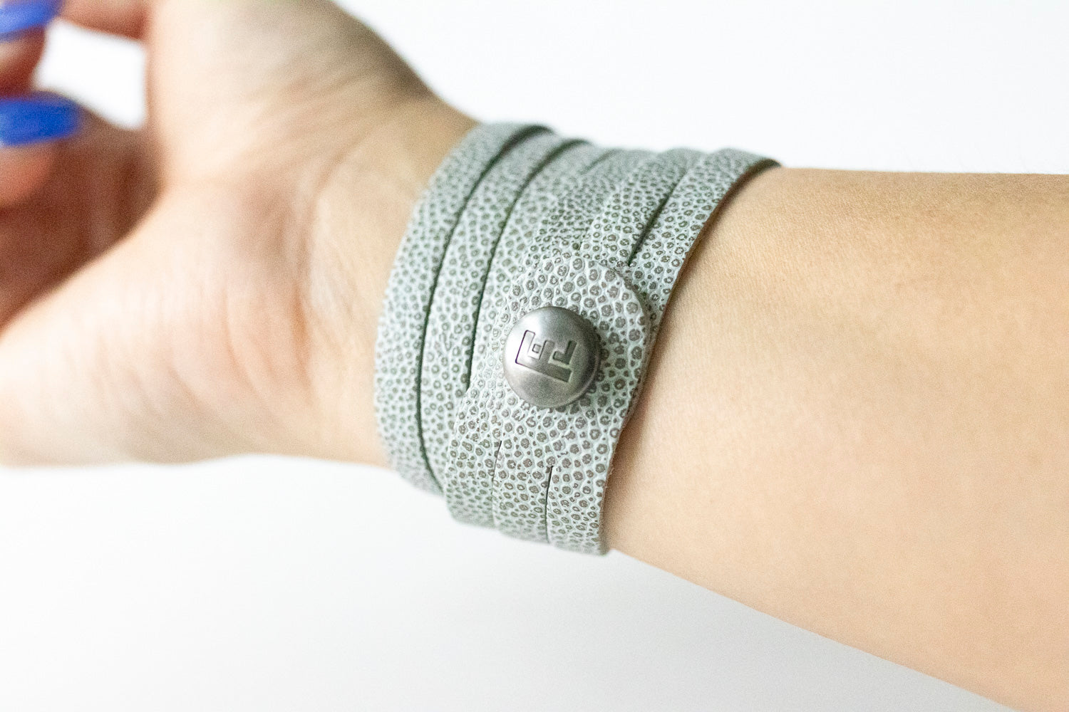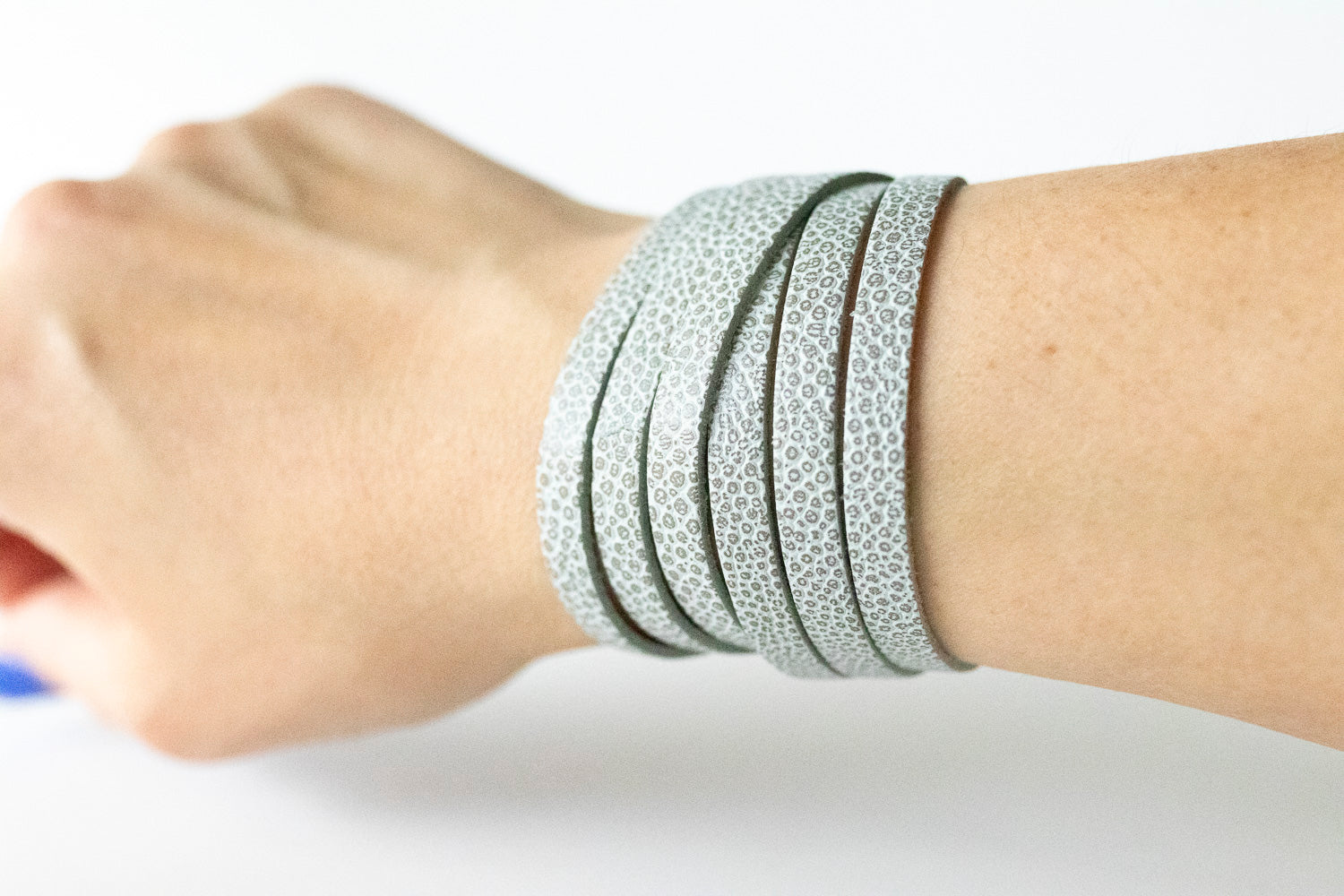 Leather Bracelet / Skinny Sliced Wrap Cuff / Silver Fox
