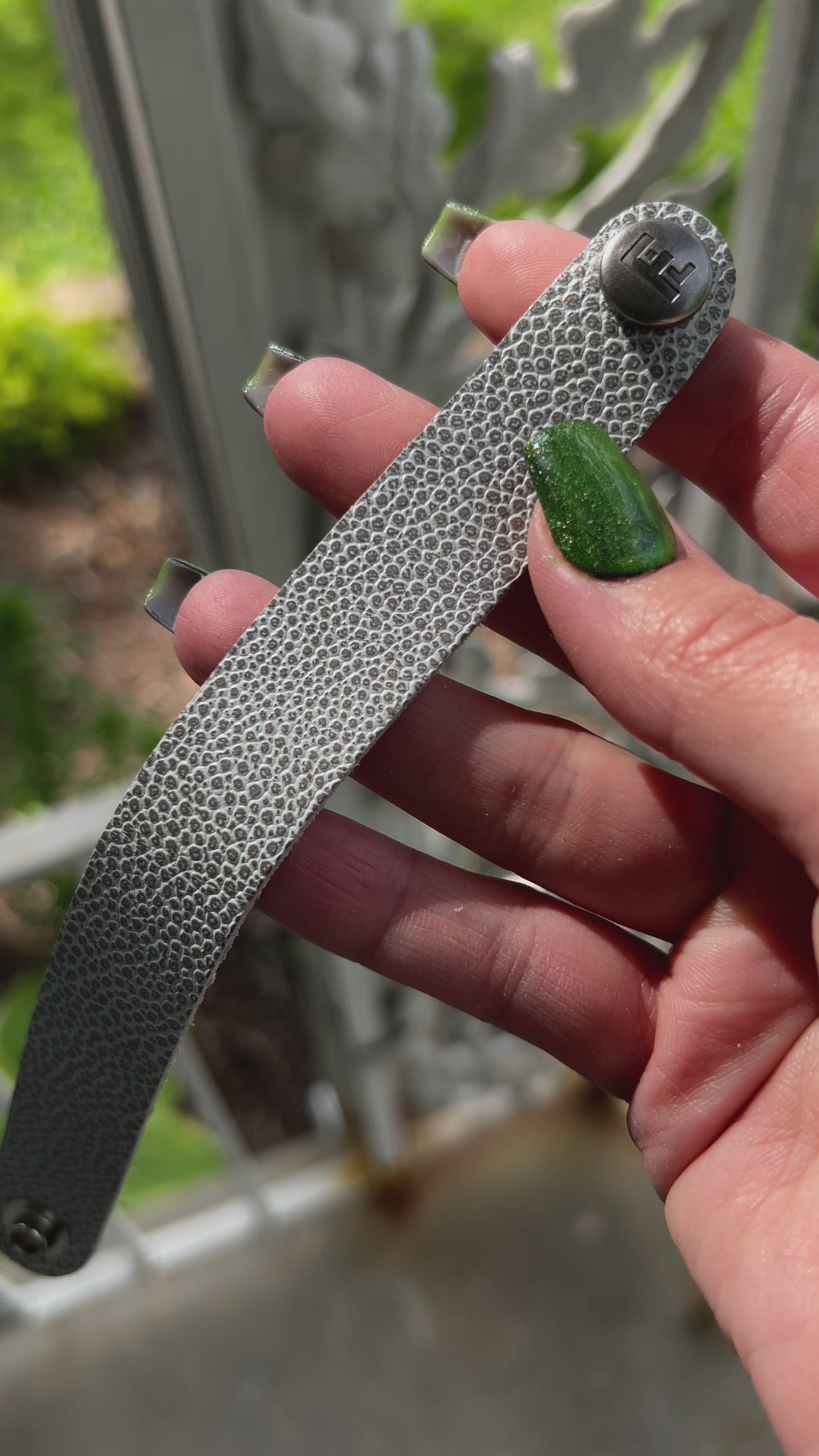 These bracelets will come with a brushed silver FL (Flourish Leather) logo snap.