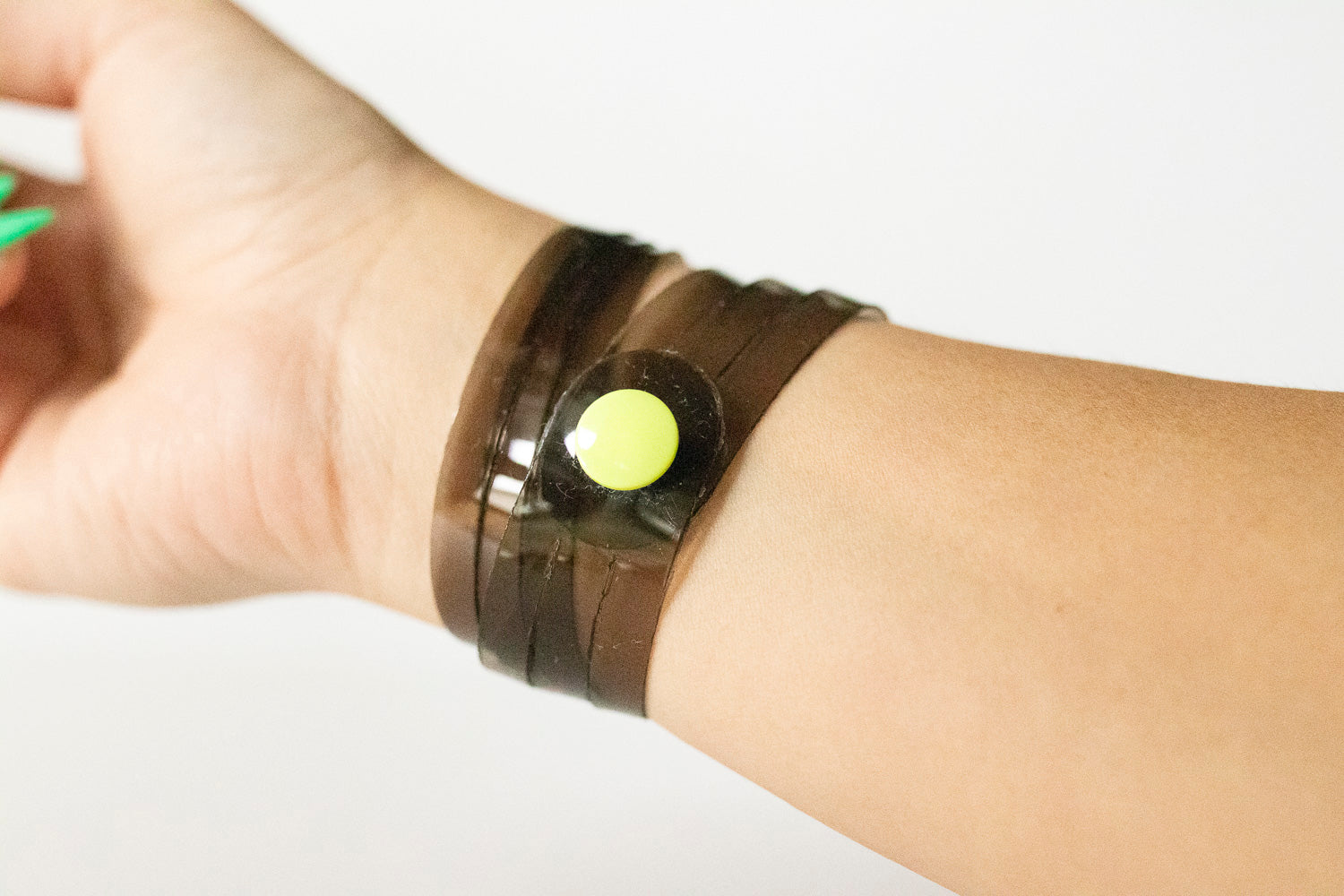 This bracelet is 100% genuine jelly vinyl. Handmade and hand-cut.