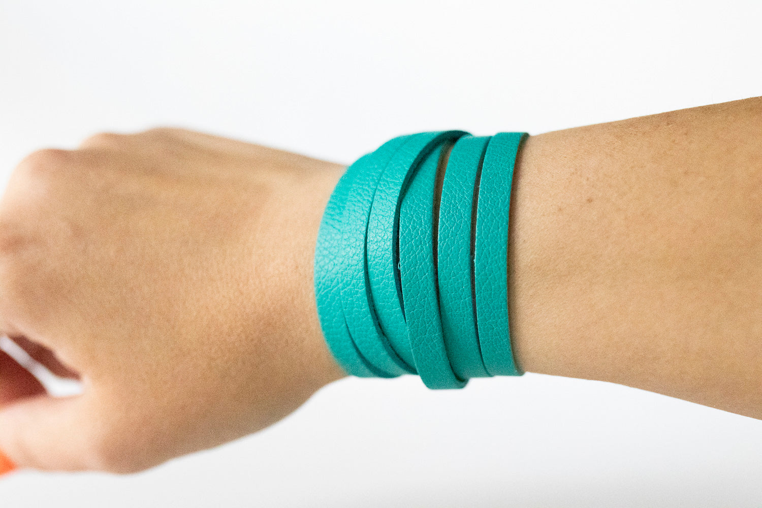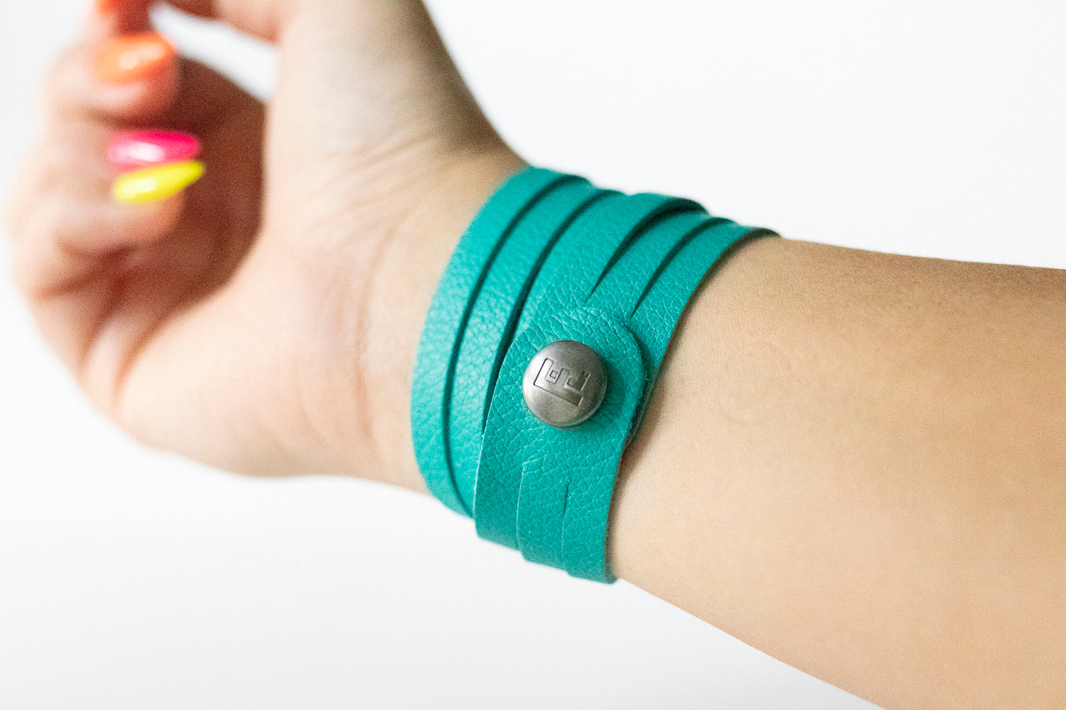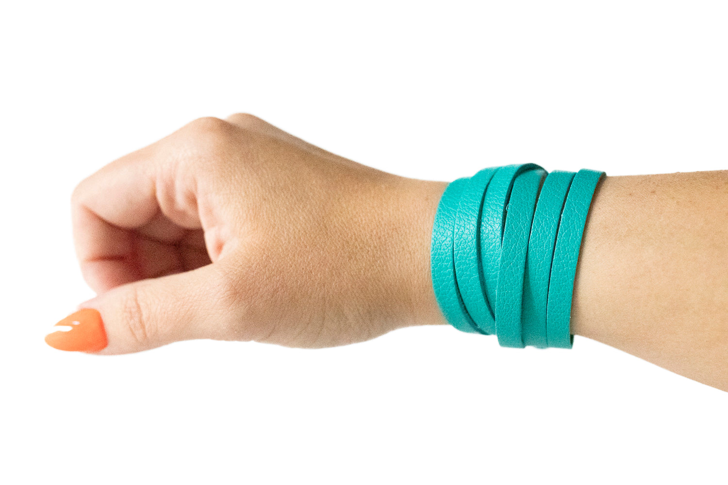 Leather Bracelet / Skinny Sliced Wrap Cuff / Tropical Waters
