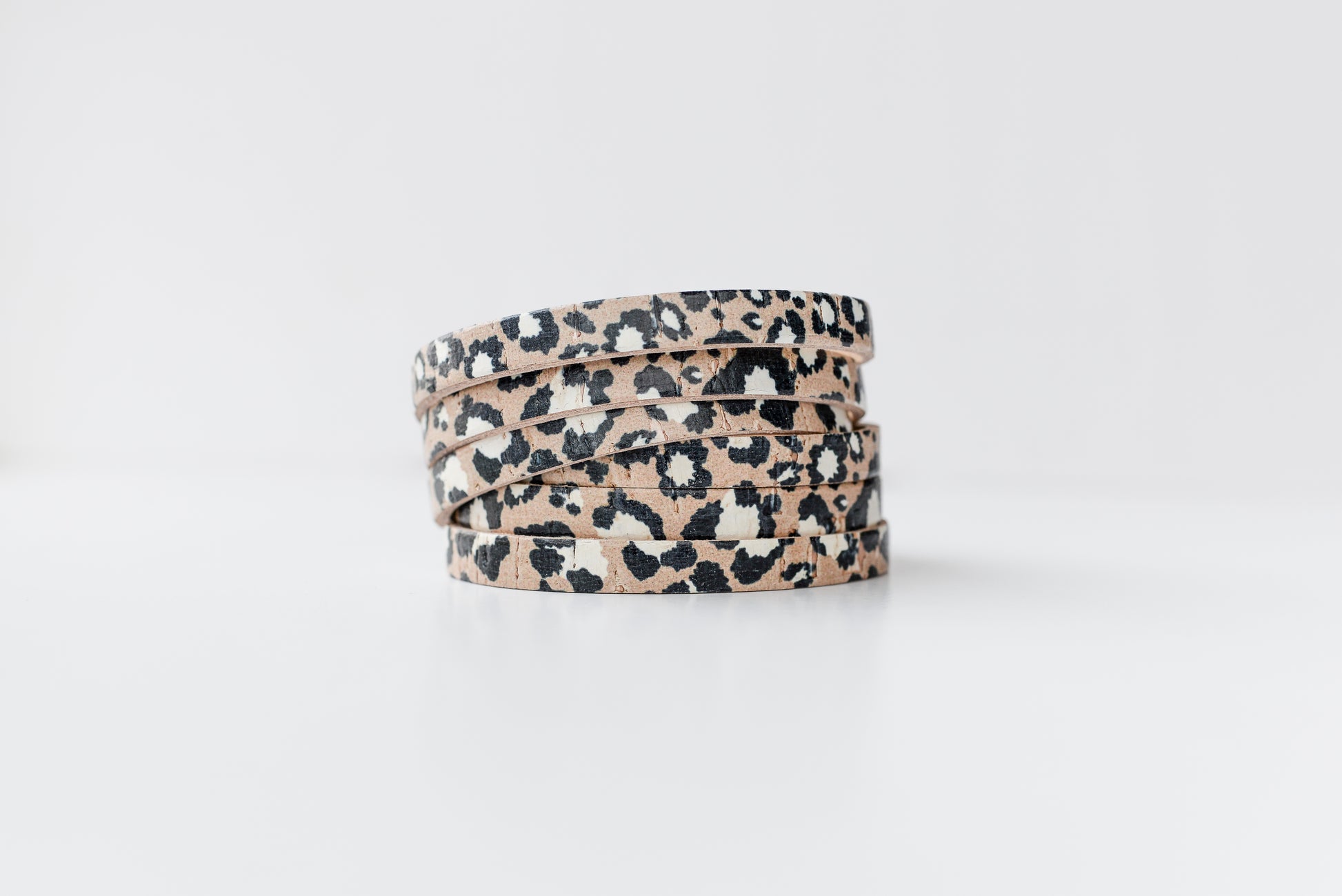 Leather Bracelet / Skinny Sliced Wrap Cuff / Wildcat Cork