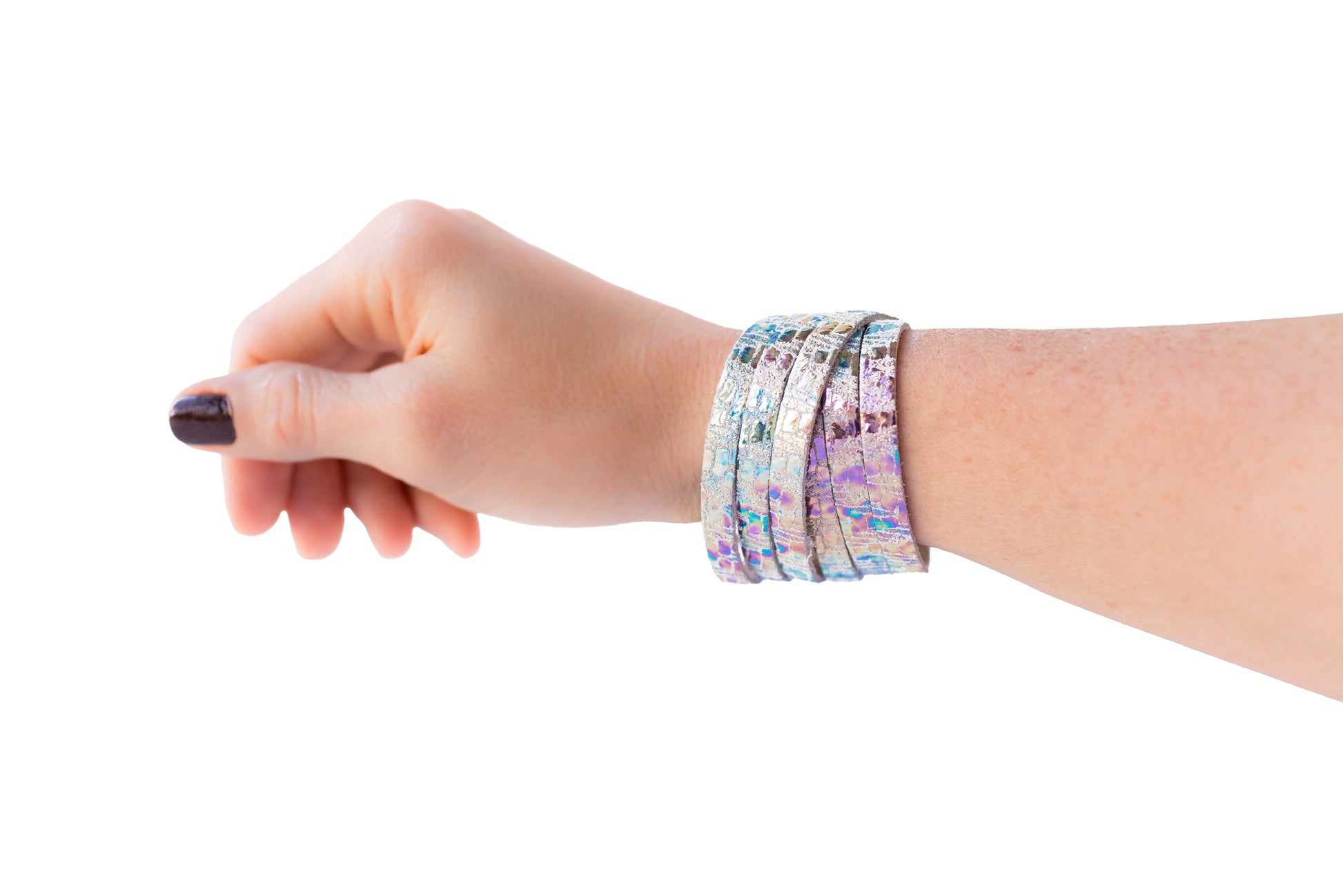 Leather Bracelet / Skinny Sliced Wrap Cuff / Woven Oil Spill