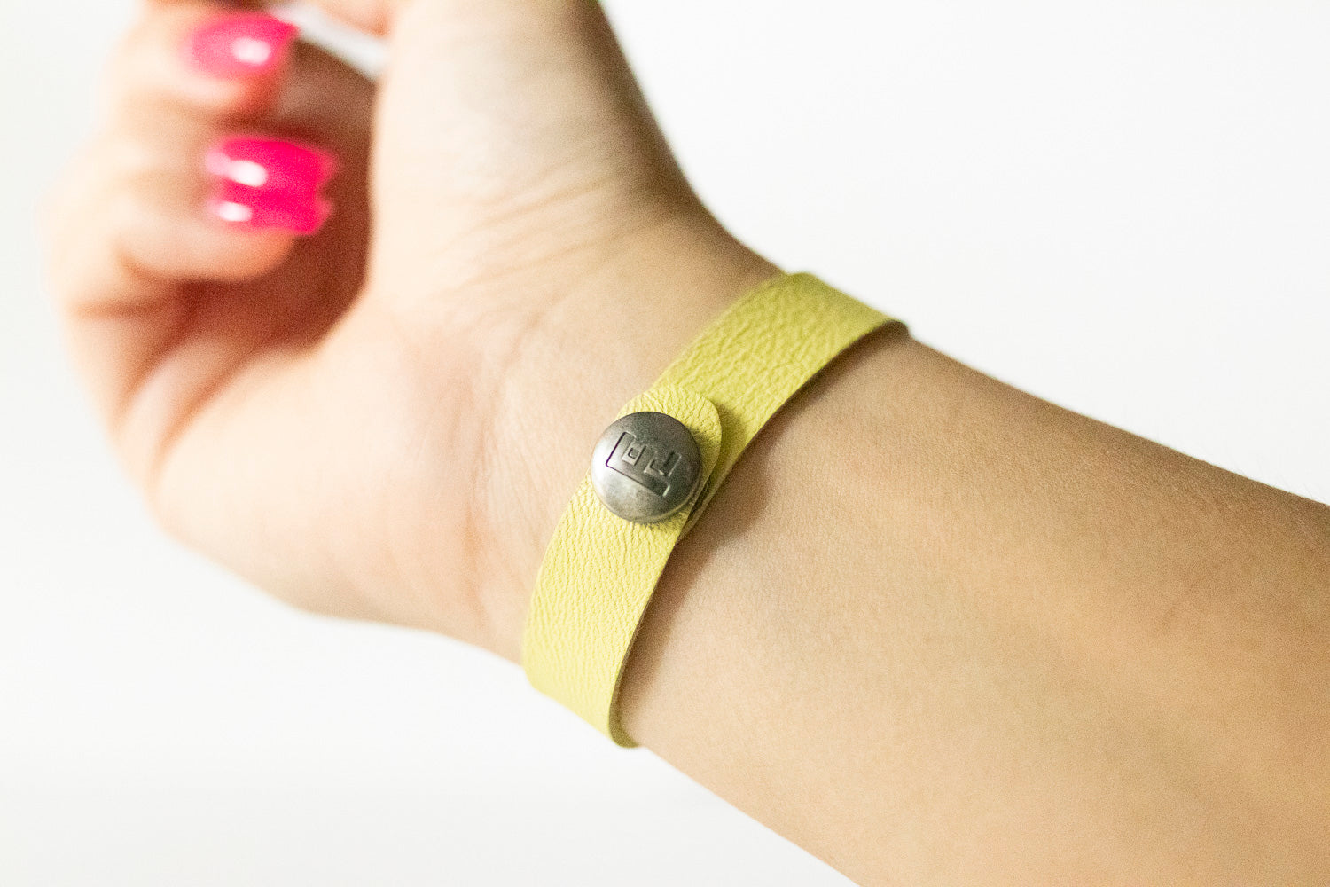 These bracelets will come with a brushed silver FL (Flourish Leather) logo snap.
