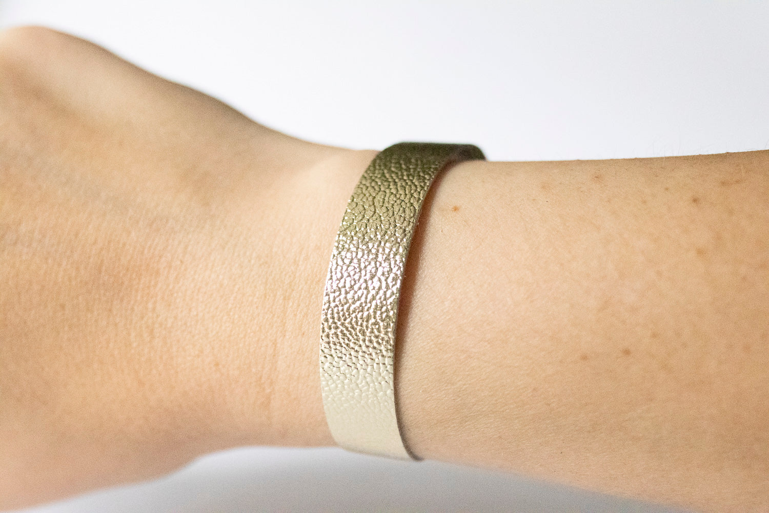 Leather Bracelet / Skinny Slim Cuff / Champagne Gold