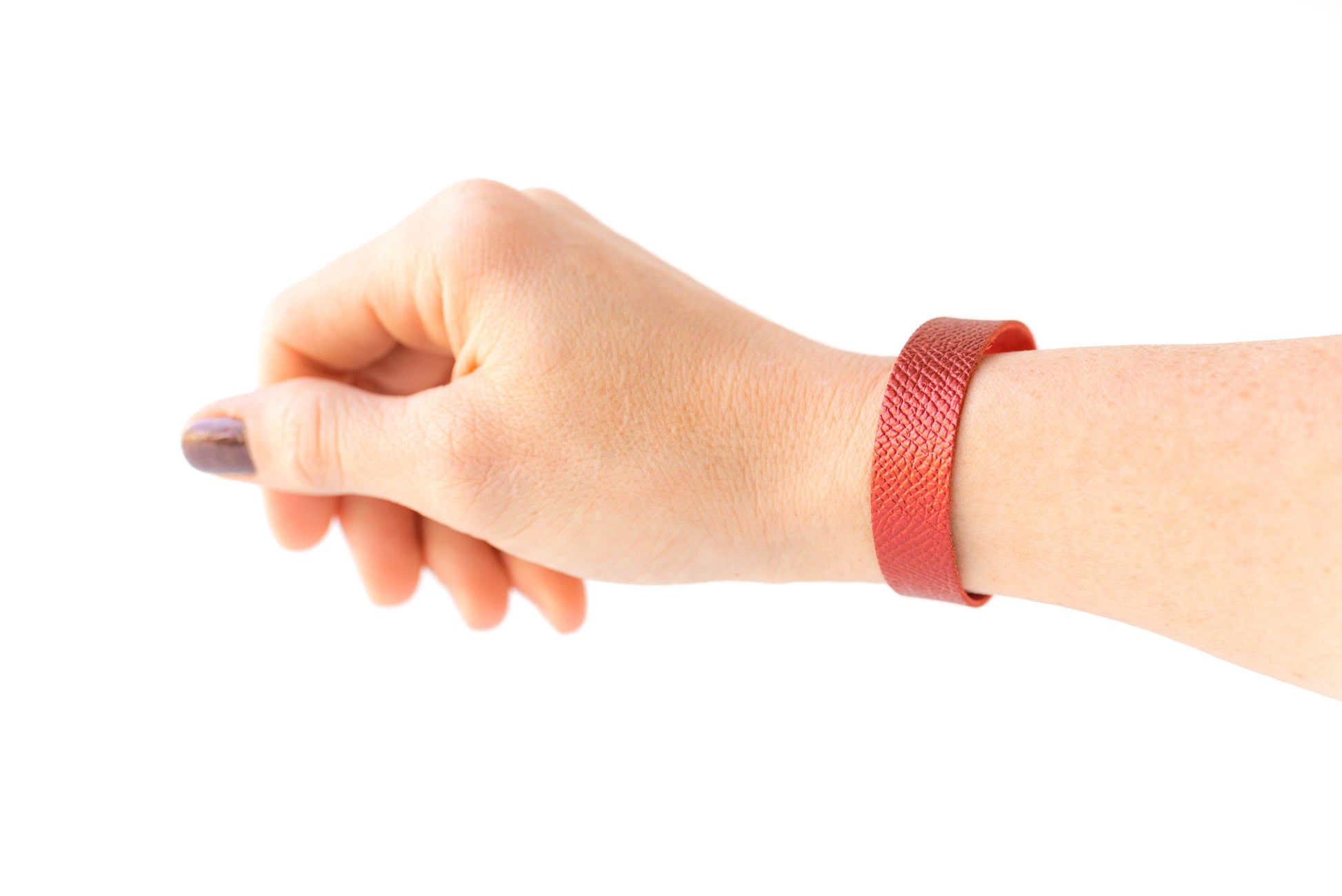 Leather Bracelet / Skinny Slim Cuff / Fire Opal Shimmer