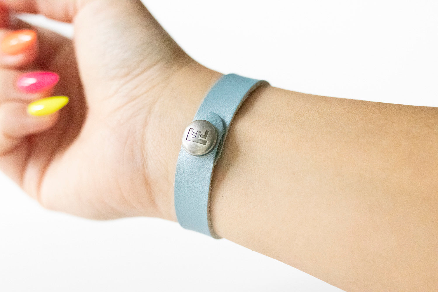 These bracelets will come with a brushed silver FL (Flourish Leather) logo snap.