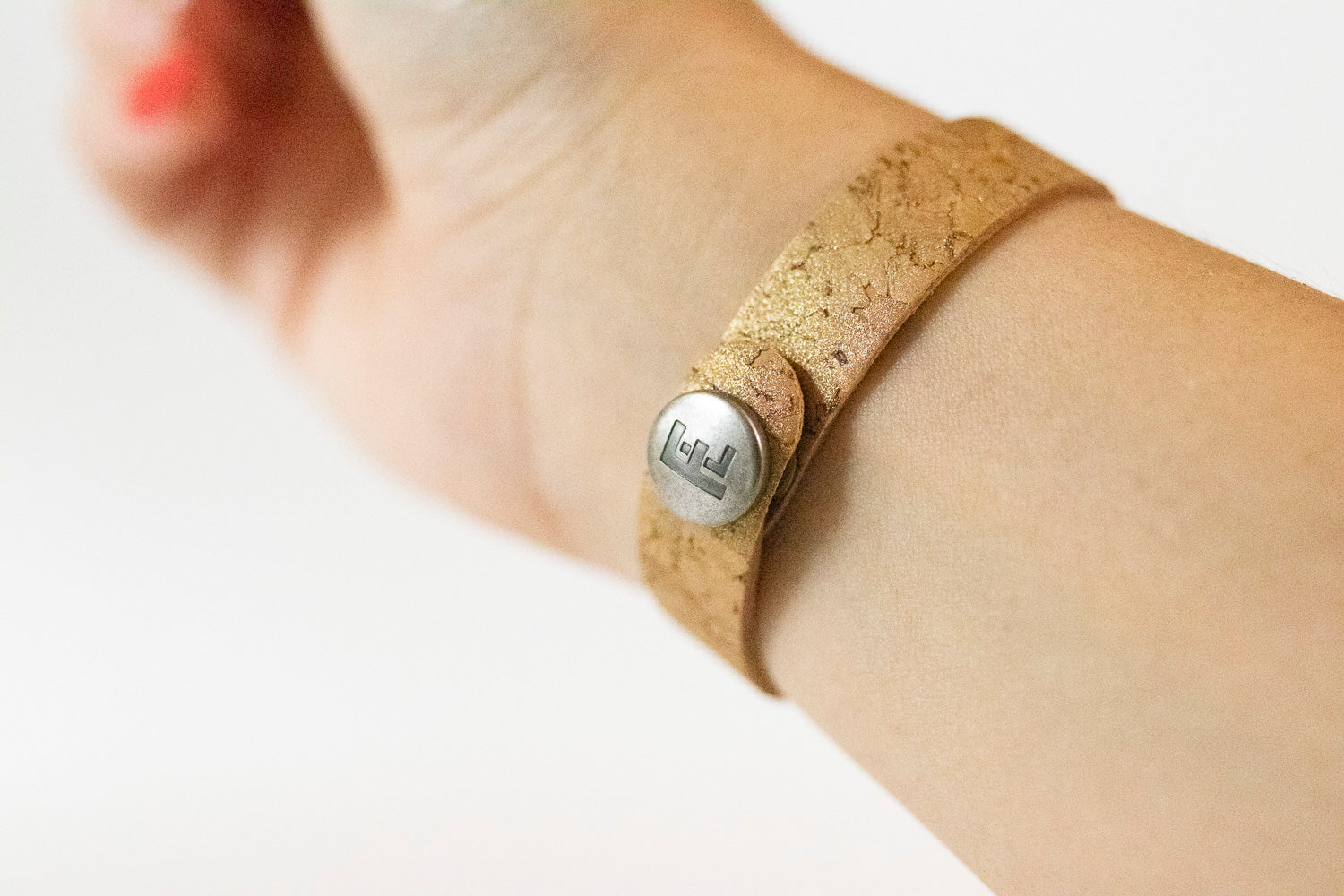 Leather Bracelet / Skinny Slim Cuff / Gold Flake Cork