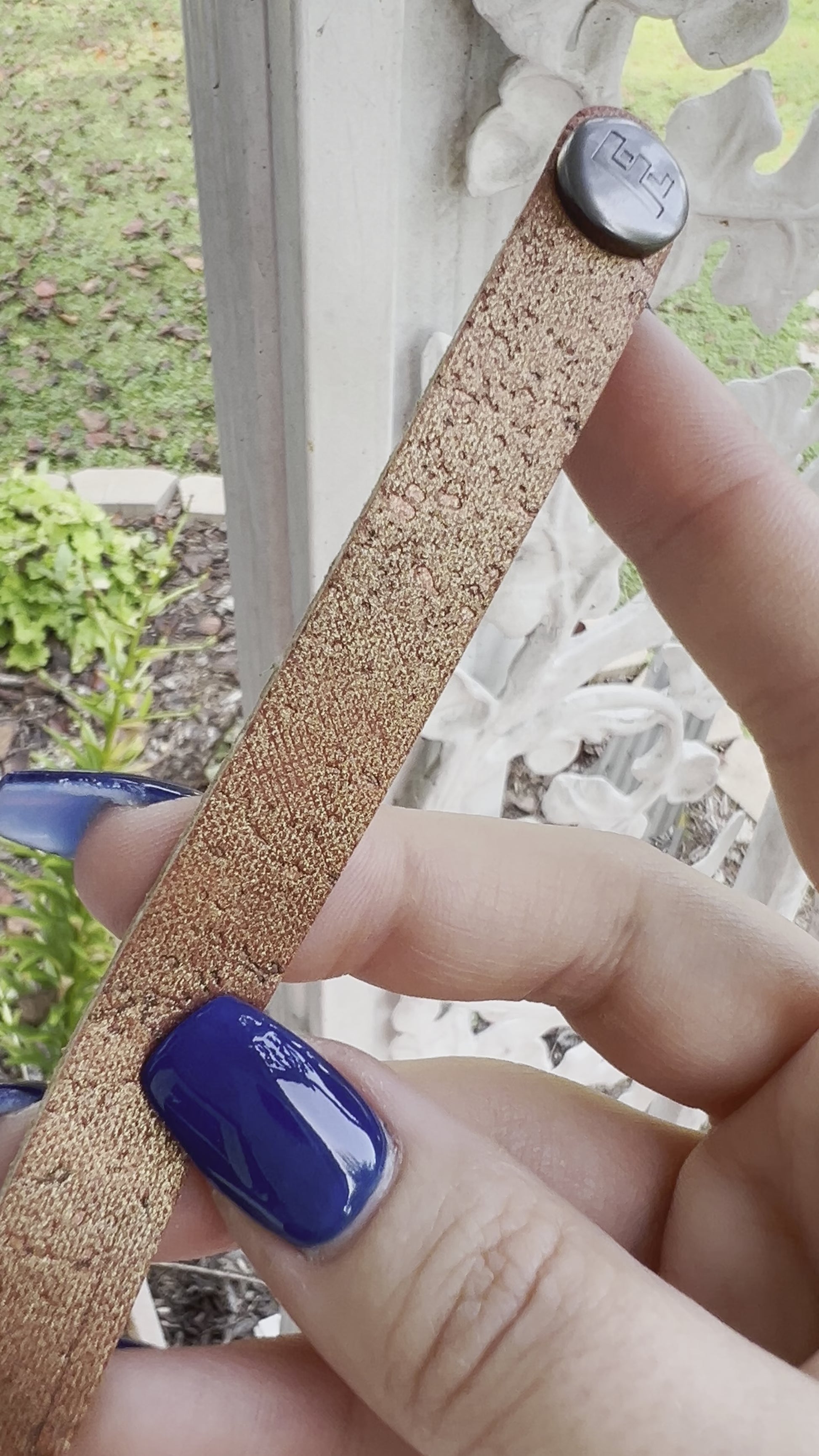 These bracelets will come with a brushed silver FL (Flourish Leather) logo snap.