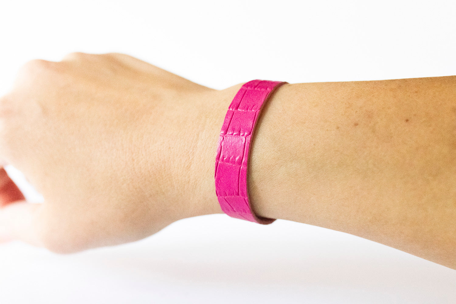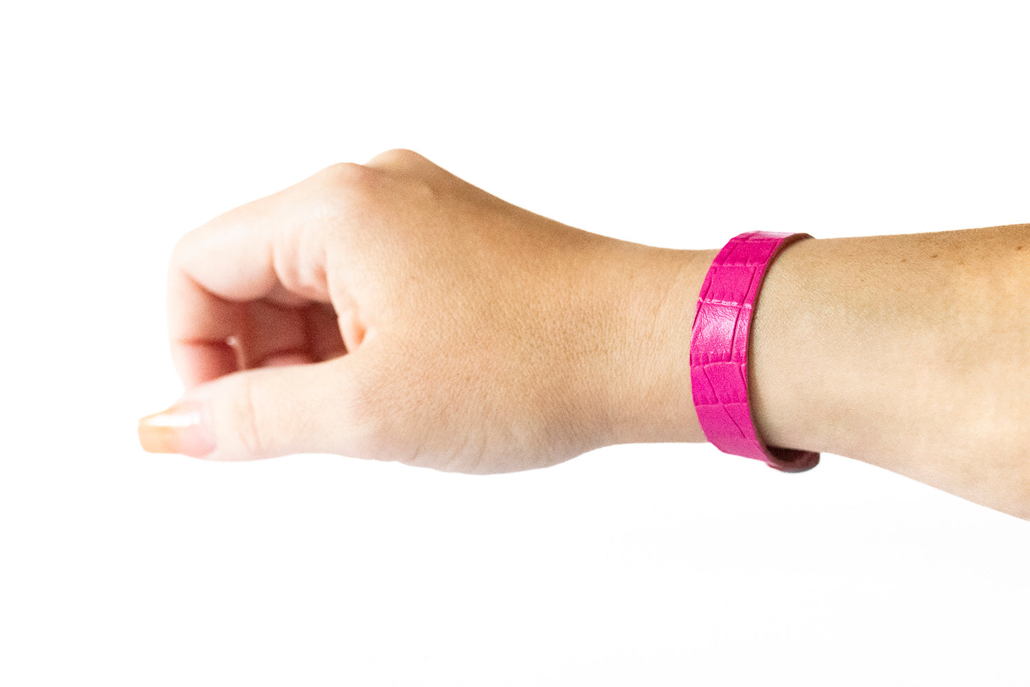 Leather Bracelet / Skinny Slim Cuff / Hot Pink Croc