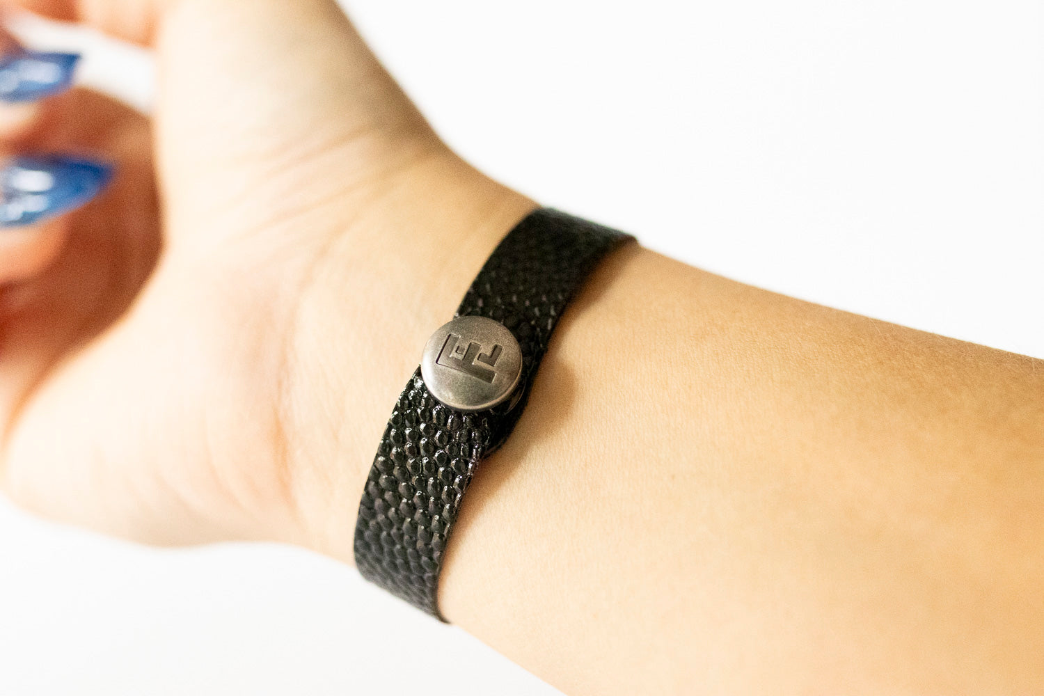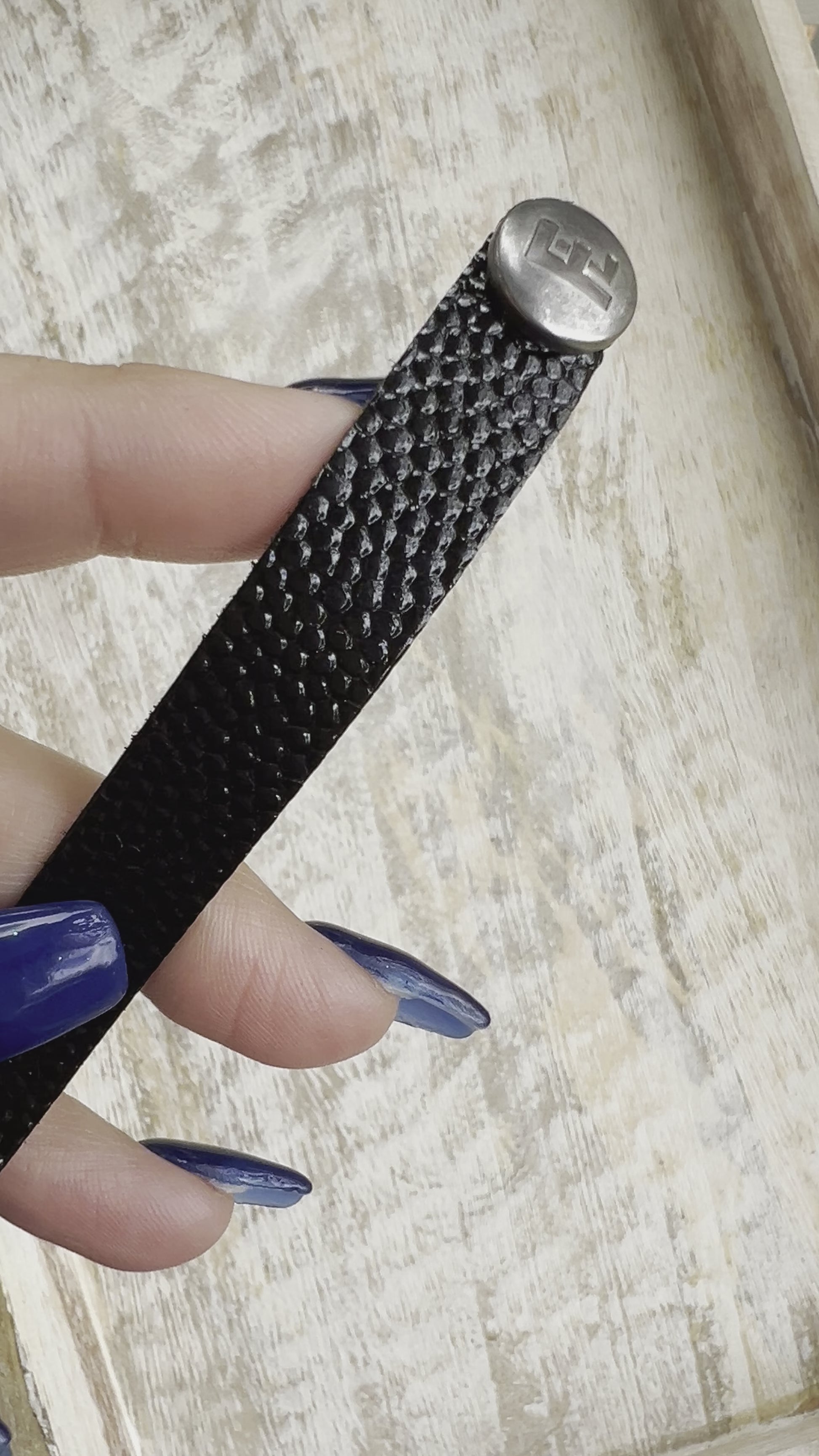 These bracelets will come with a brushed silver FL (Flourish Leather) logo snap.