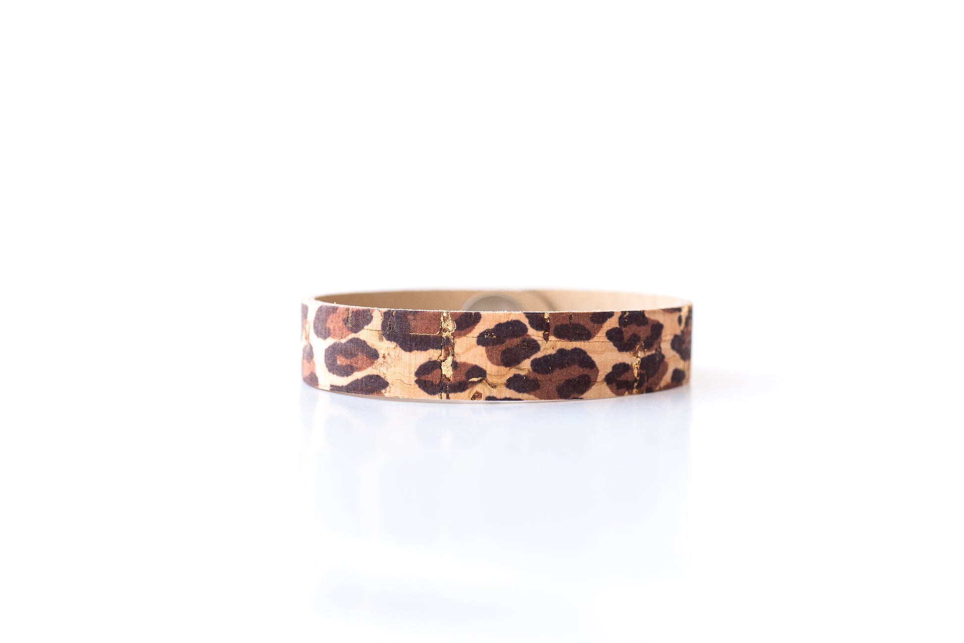 Leather Bracelet / Skinny Slim Cuff / Leopard Cork