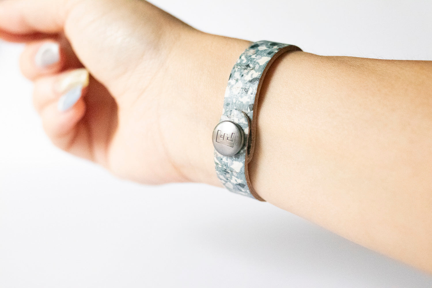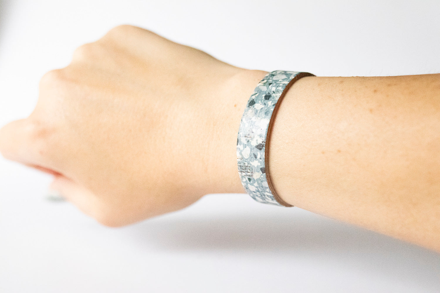 Leather Bracelet / Skinny Slim Cuff / Ocean Terrazzo Cork
