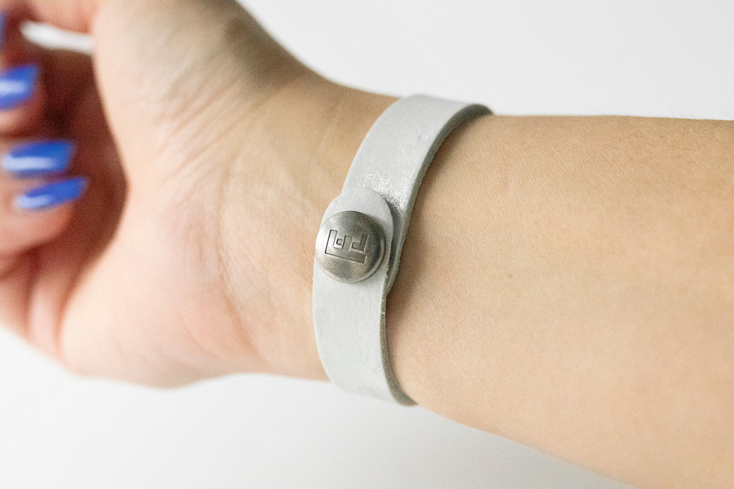 These bracelets will come with a brushed silver FL (Flourish Leather) logo snap.