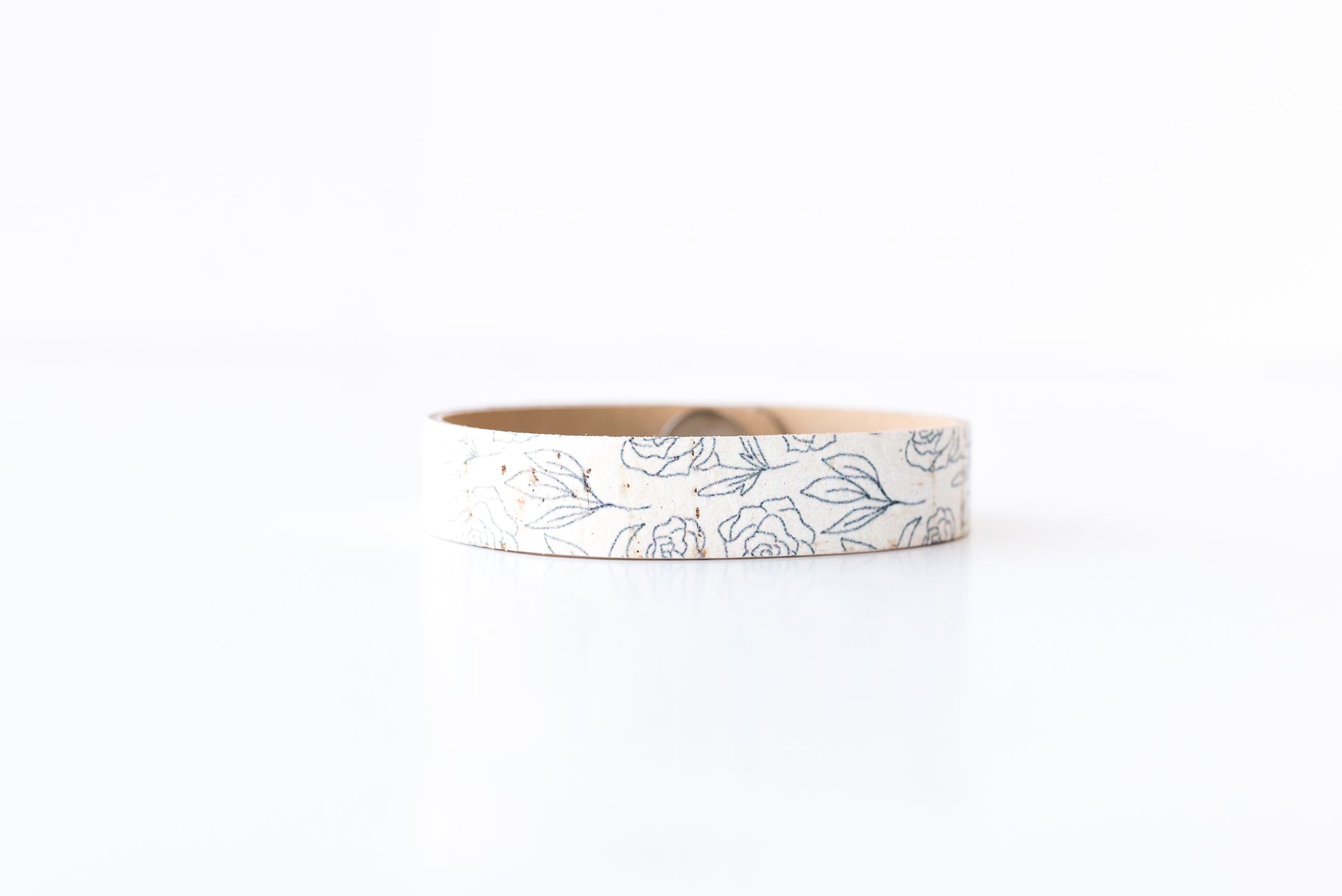 Leather Bracelet / Skinny Slim Cuff / Simple Roses Cork