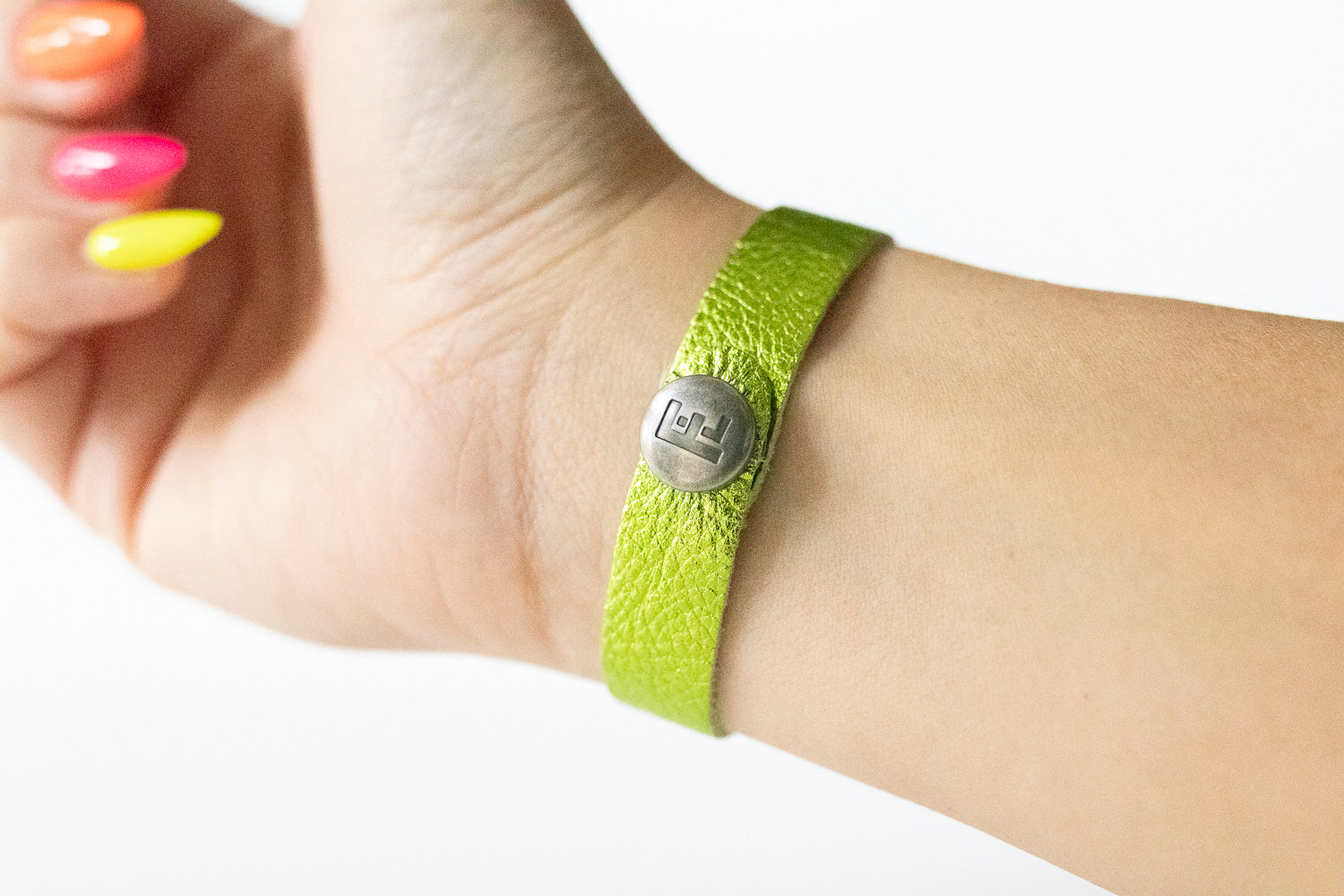 These bracelets will come with a brushed silver FL (Flourish Leather) logo snap.