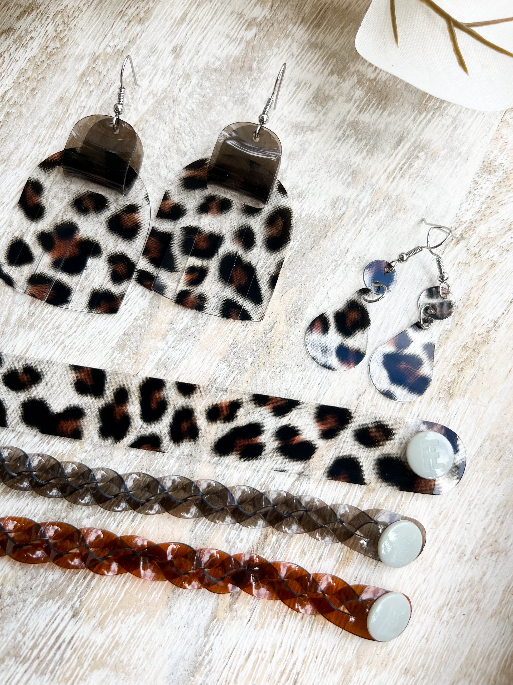 Leather Bracelet / Skinny Slim Cuff / Spotted Leopard Jelly