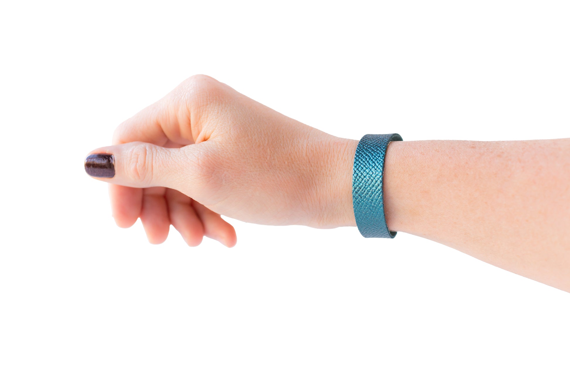 Leather Bracelet / Skinny Slim Cuff / Teal Quartz Shimmer