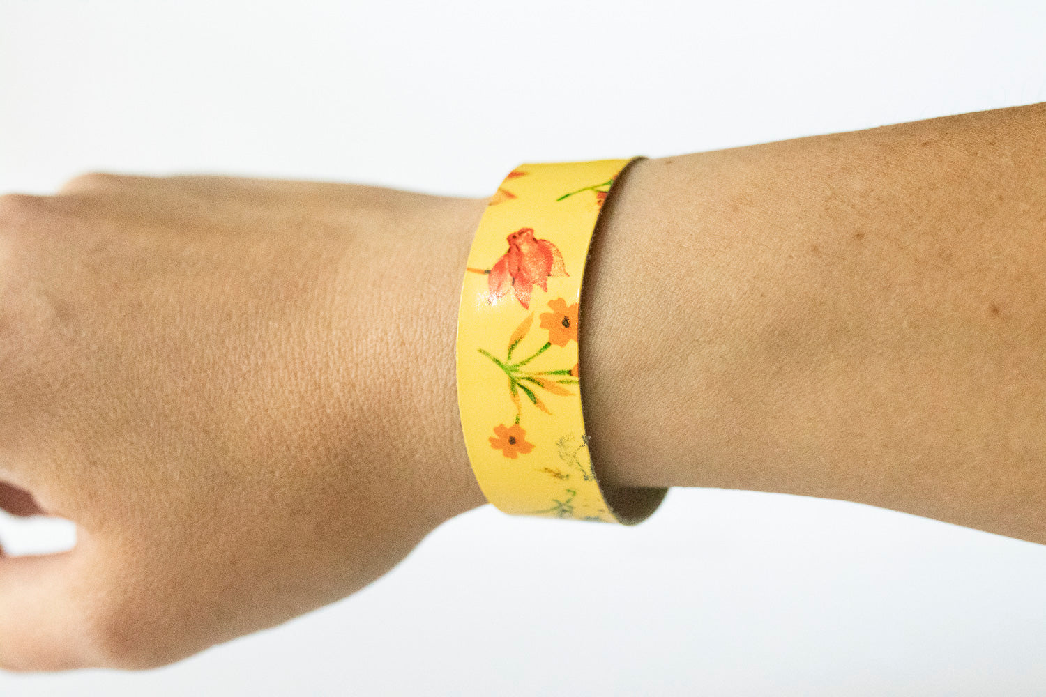 Leather Bracelet / Slim Cuff / Autumn Botanical