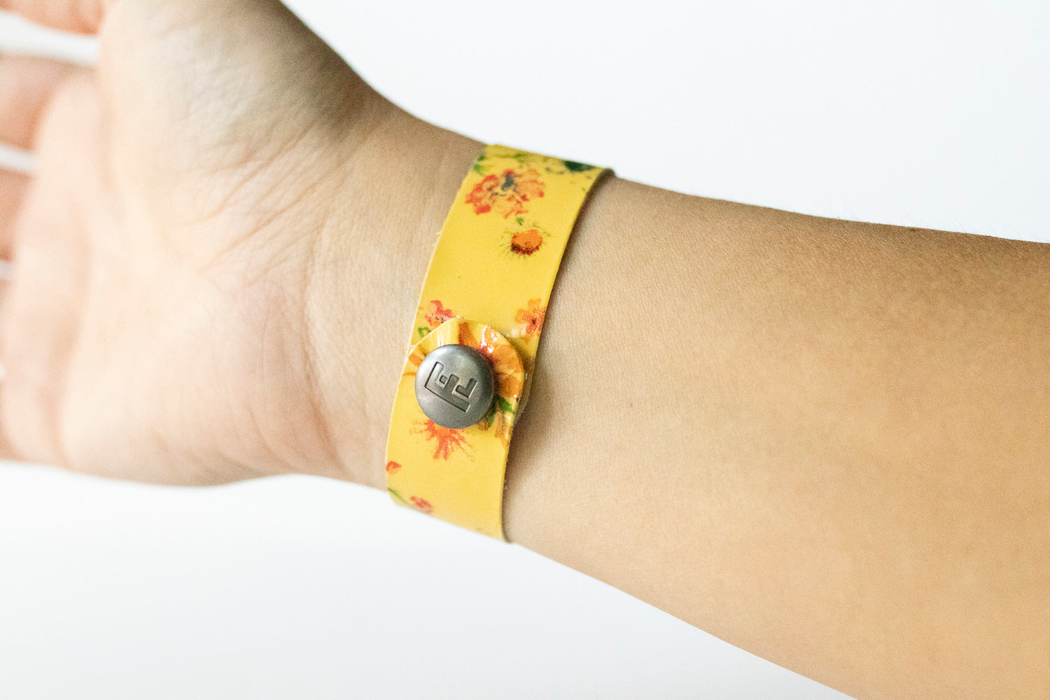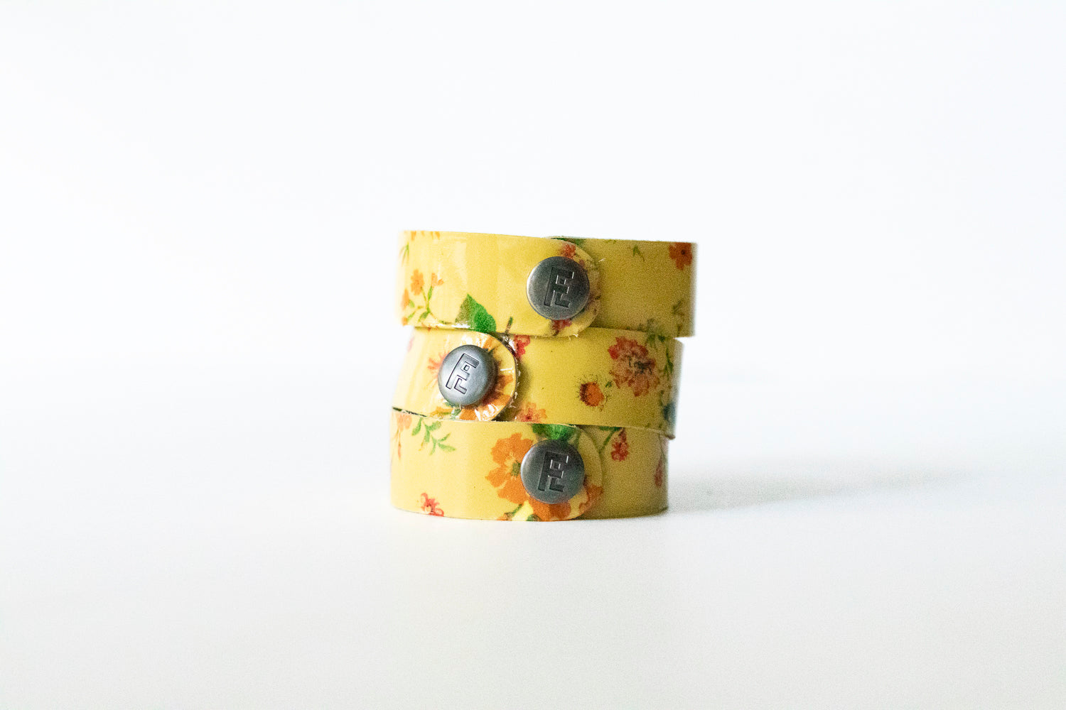 These bracelets will come with a brushed silver FL (Flourish Leather) logo snap.