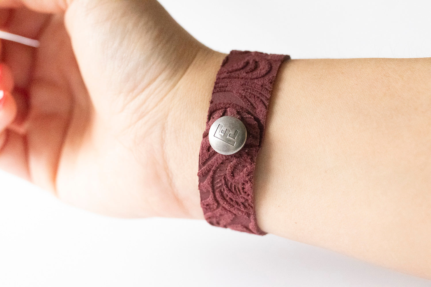 These bracelets will come with a brushed silver FL (Flourish Leather) logo snap.